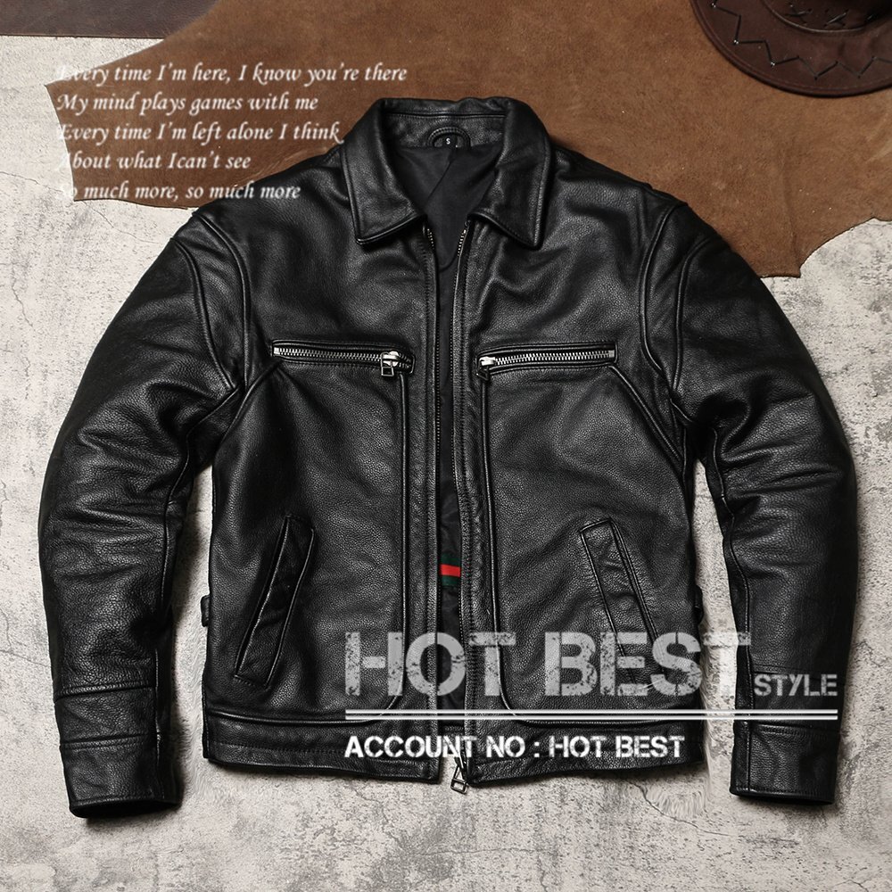 カウハイド 襟付き スポーツジャケット メンズ 革ジャン ボマーボンバー ライダース イタリアンレザー 牛革 Y1468/XL
