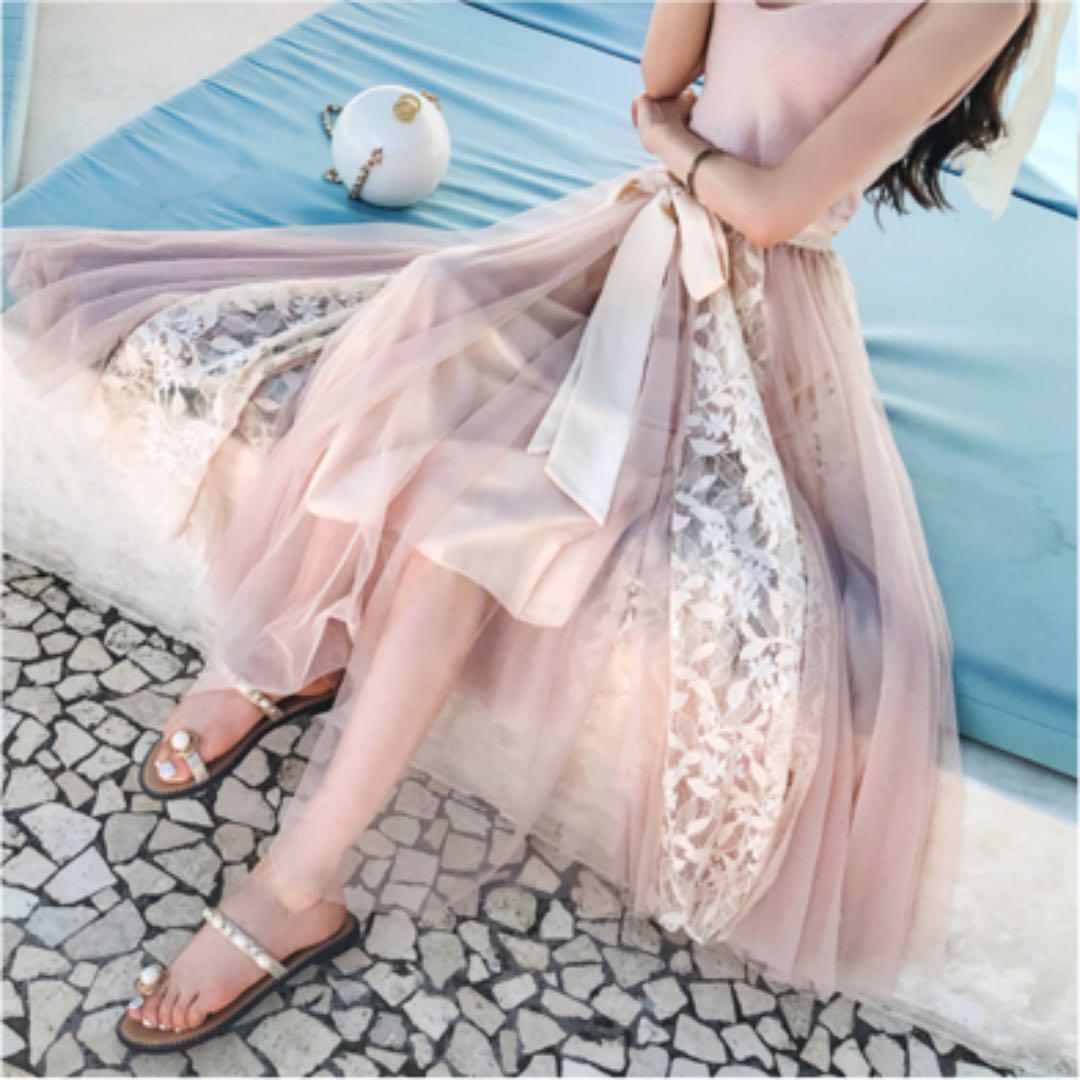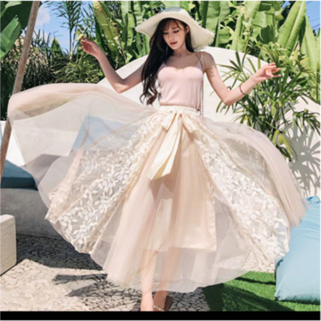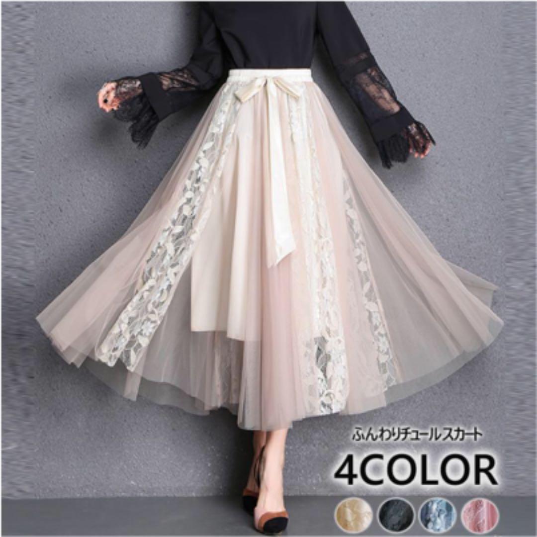 未使用 発表会 イベント デート フリ- F チュ-ル マキシ フレア- スカ-ト (SKN9450)