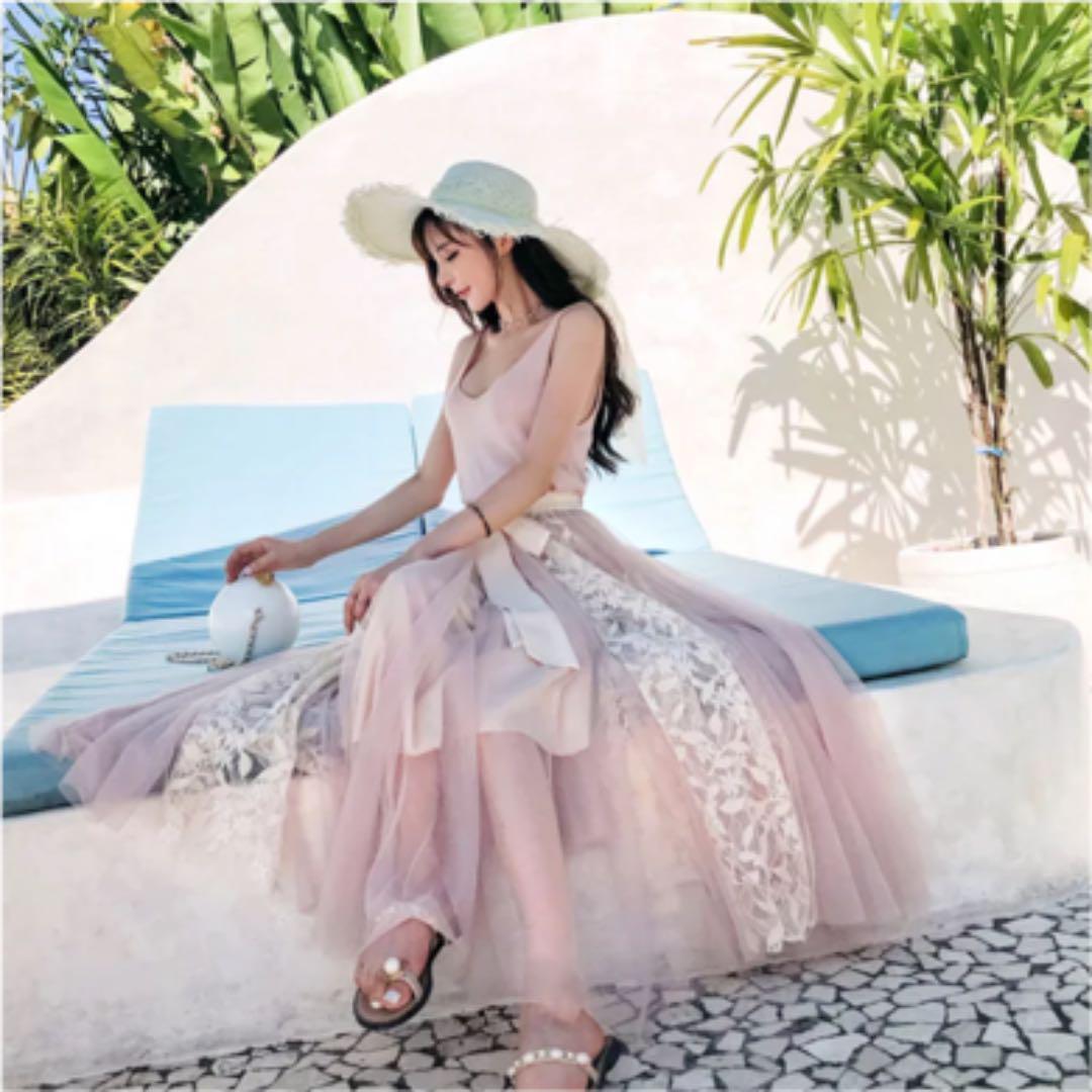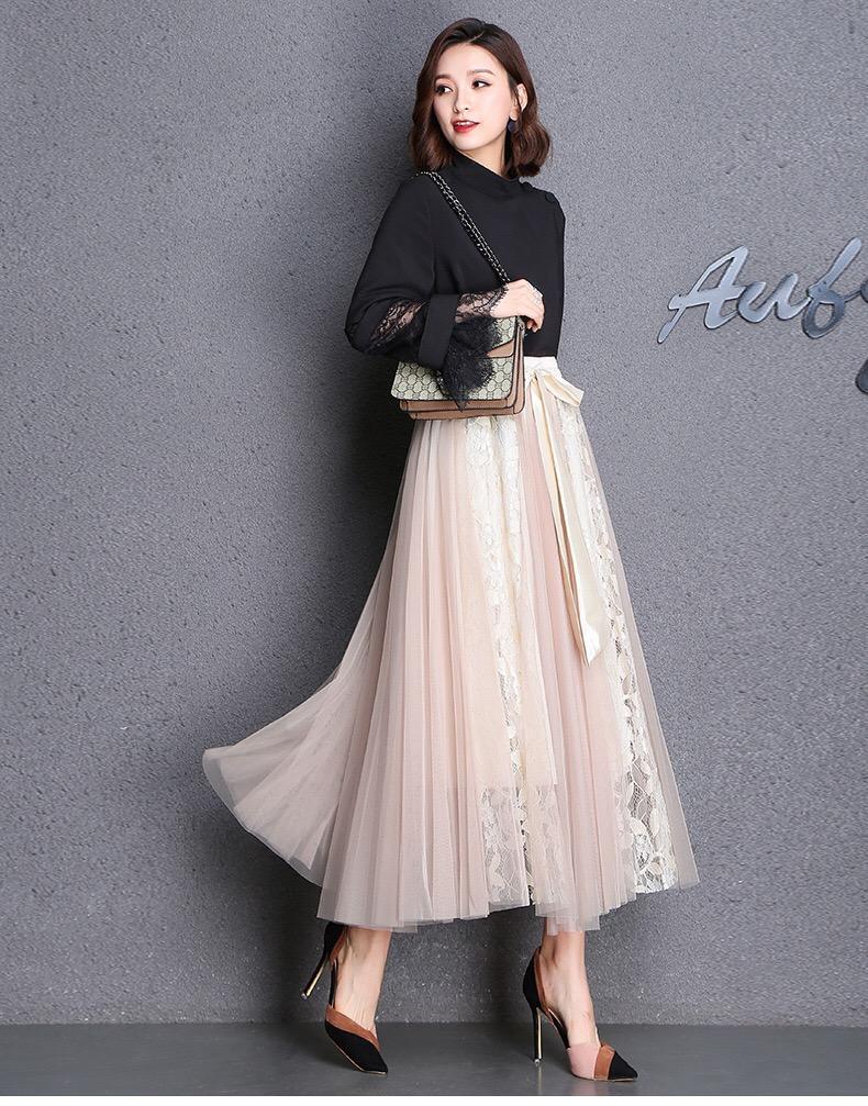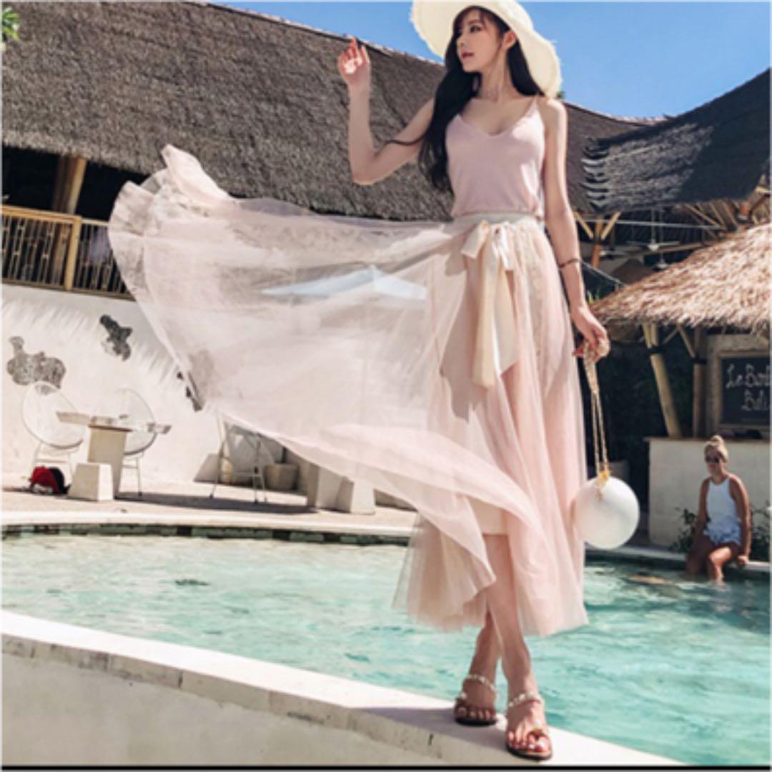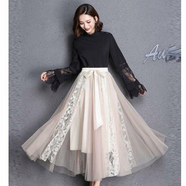 未使用 発表会 イベント デート フリ- F チュ-ル マキシ フレア- スカ-ト (SKN9450)