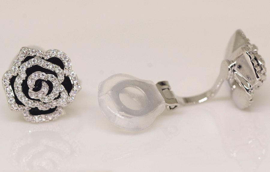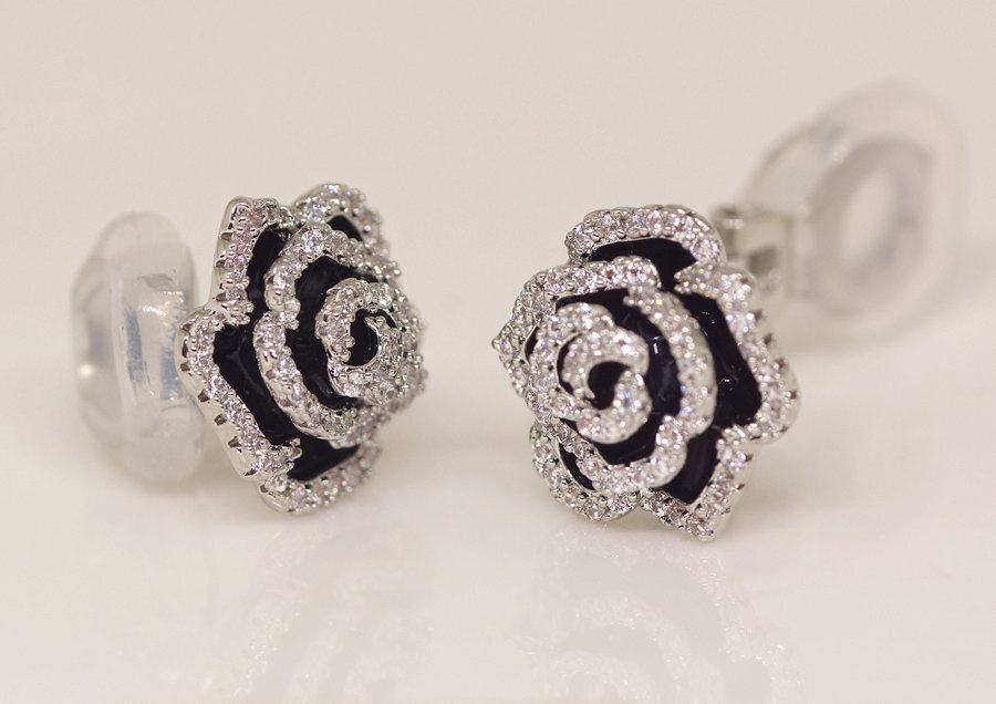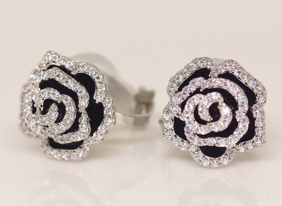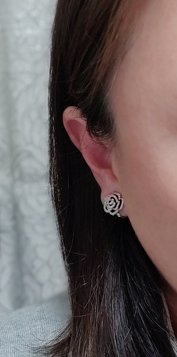 18K RGP プラチナ ダイヤ CZ バラ イヤリング yp4854