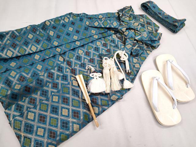 着物【化繊】の状態は特に目立ったシミ汚れなどもなく大変良い状態です。 羽織【化繊・五つ紋】の状態は接写画像のように上前・後身頃・両袖・衿裏に薄い汚れがございますが その他特に目立ったシミ汚れなどもなく大変良い状態です。 長襦袢【無双仕立て・袖:化繊、胴:綿】の状態は接写画像のように上前・右袖前・衿山・胴裏に薄い汚れがございますが その他特に目立ったシミ汚れなどもなく大変良い状態です。 袴【化繊】の状態は特に目立ったシミ汚れなどもなく大変良い状態です。 お安く出品致しますので、是非この機会にいかがでしょうか? ※長襦袢の袖は大名袖になっております。 ※雪駄ぼ底・懐剣の房に汚れがございます。 ※若干保管臭がございます。 ※若干たたみジワがございます。 |