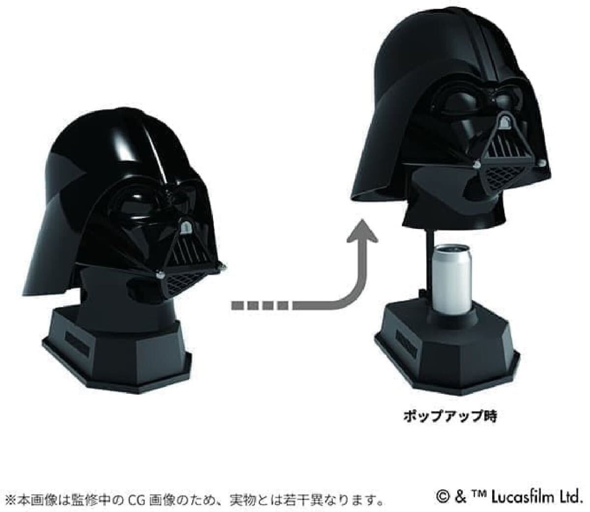ダース・ベイダーの頭部を模した「MASK 保冷庫」は、土台部分にペルチェ素子による冷却板を設け、350ミリリットルの缶を1本保冷できる。頭部を押すと、保冷マスクがポップアップし、飲み物を取り出せる。開閉時には、ダースベイダ―の呼吸音、ライトセーバーの効果音が交互に再生される――など、ファンにはうれしいギミックも盛り込む。本体サイズは305ミリ(幅)×325ミリ(奥行き)×400ミリ(高さ)、重量は約2.3キロ。