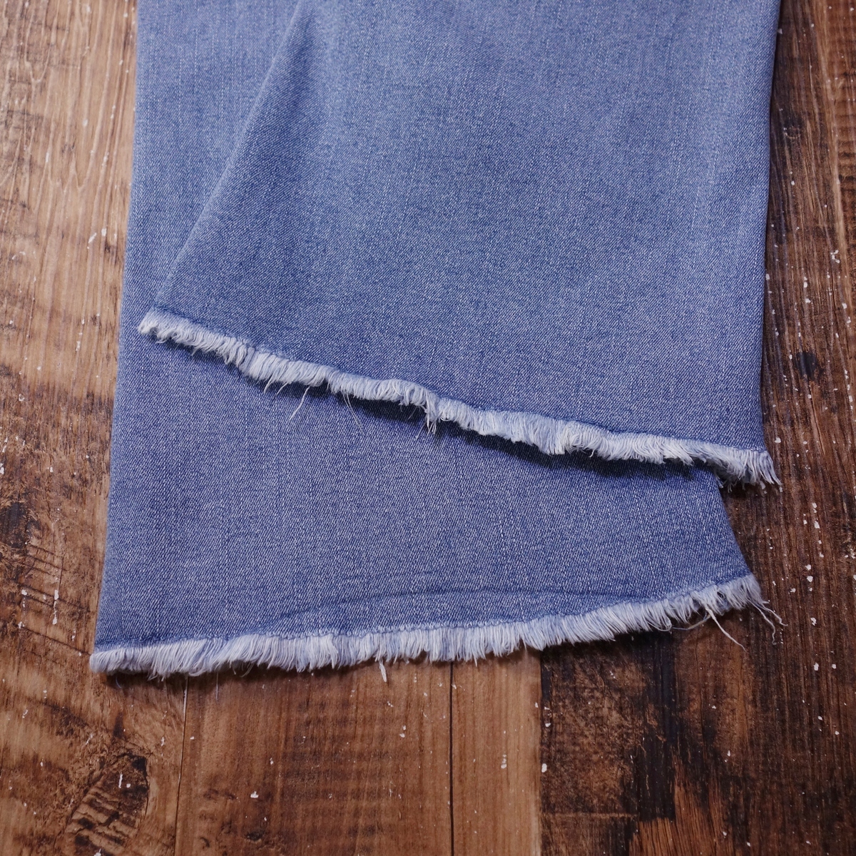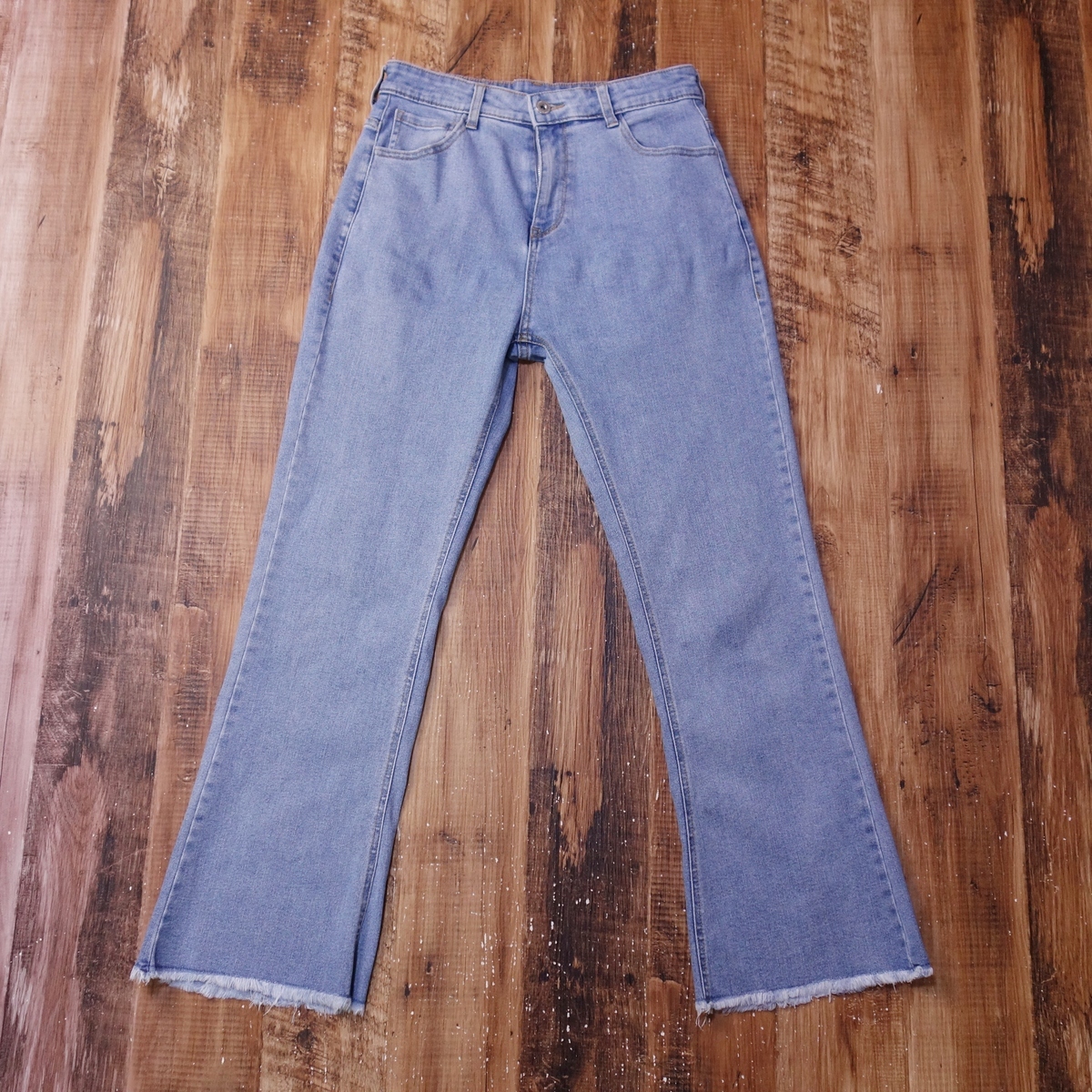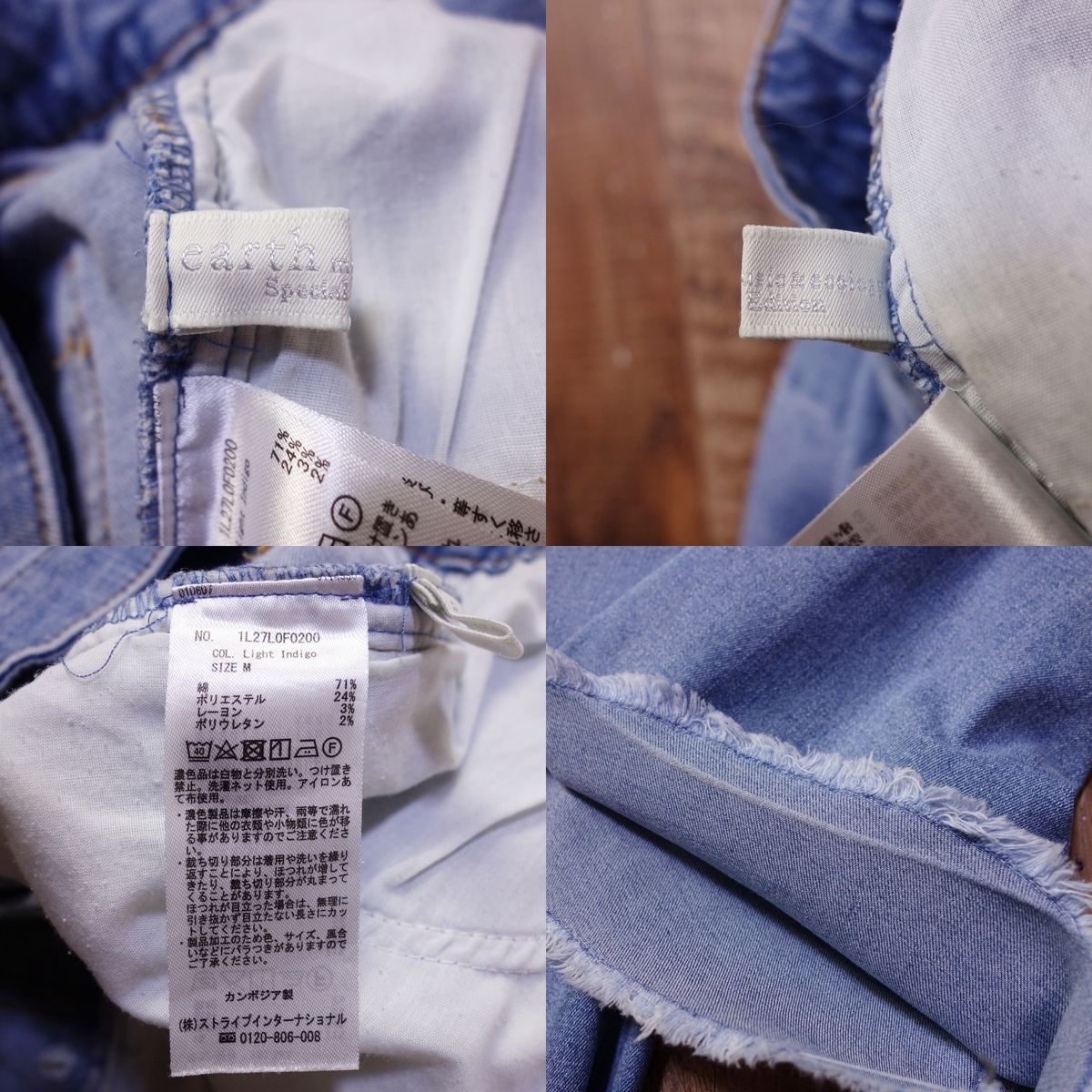 アースミュージックアンドエコロジー カットオフフレアデニムパンツ レディース ストレッチ 美脚 Mサイズ ライトブルー QH21