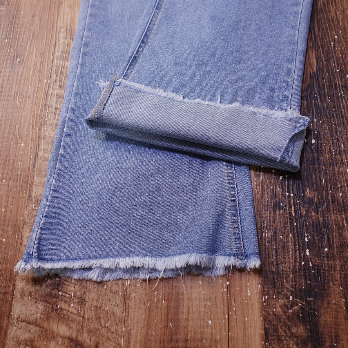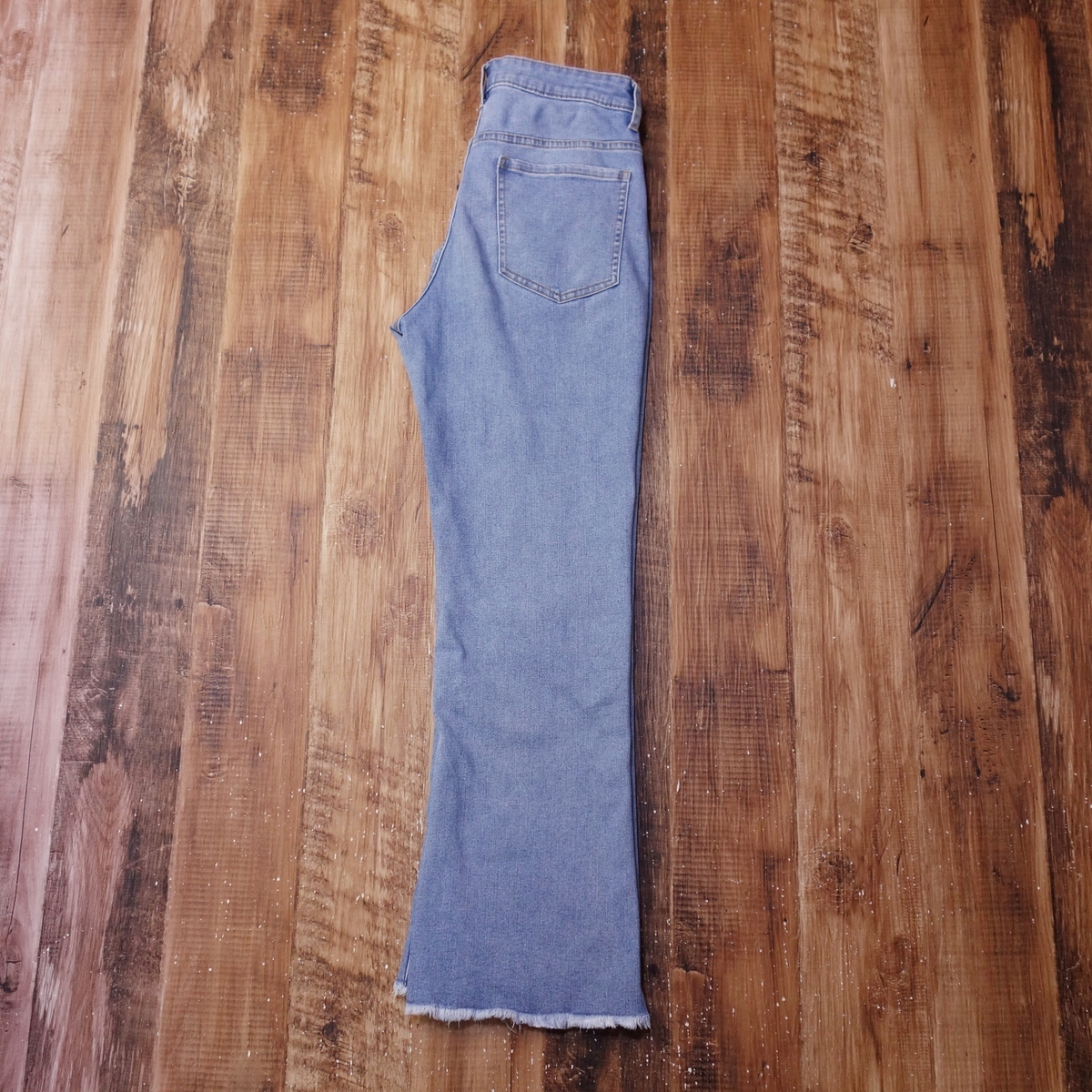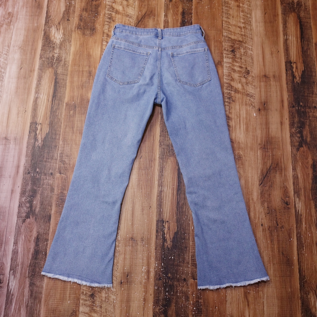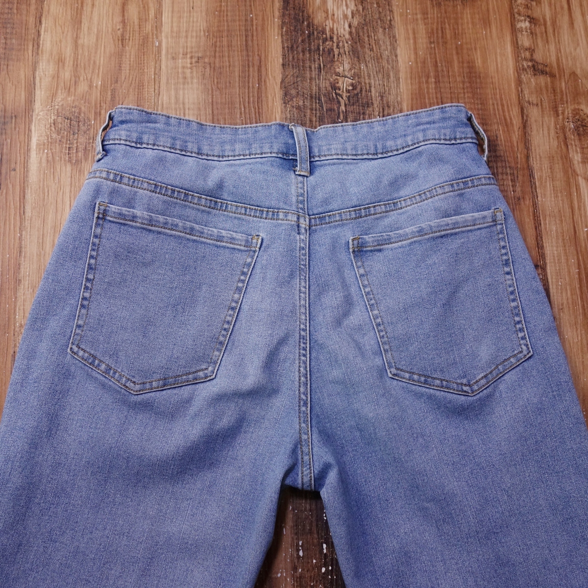 アースミュージックアンドエコロジー カットオフフレアデニムパンツ レディース ストレッチ 美脚 Mサイズ ライトブルー QH21