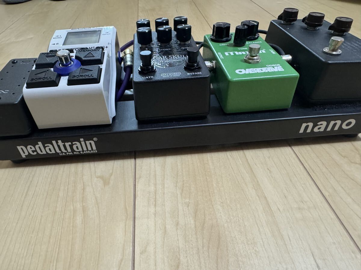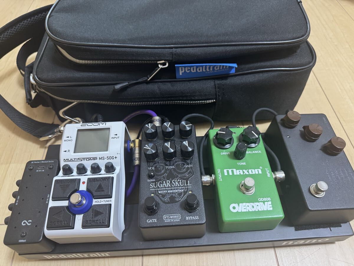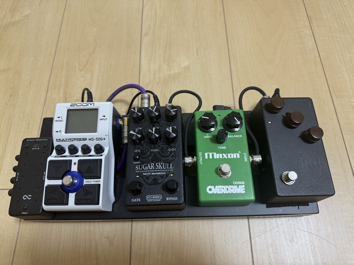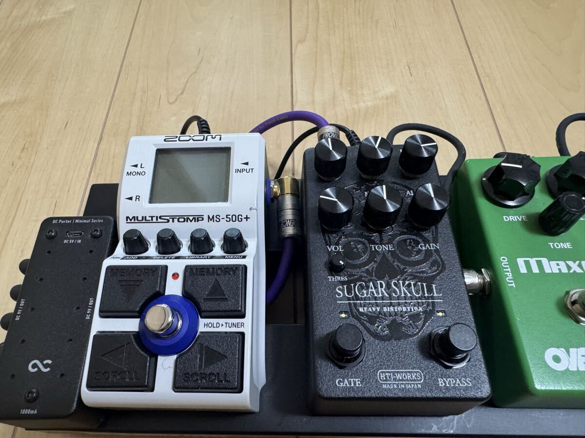 接続順から→Bright Horse → MAXON OD808→htj-works SUGAR SKULL HEAVY DISTORTION→ ZOOM MS-50G+→ One Control DC Porter