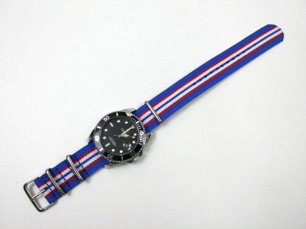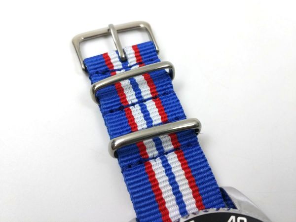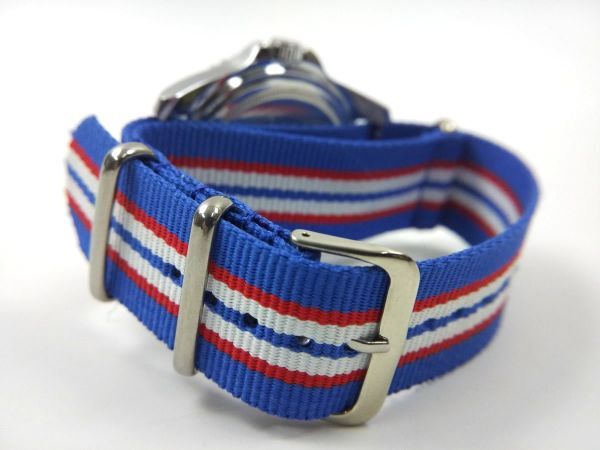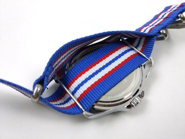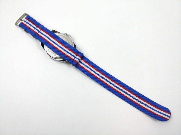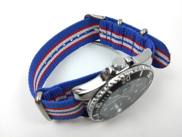 ナイロン製ミリタリーストラップ natoタイプ 布ベルト 腕時計 ブルー系 ストライプ 22mm
