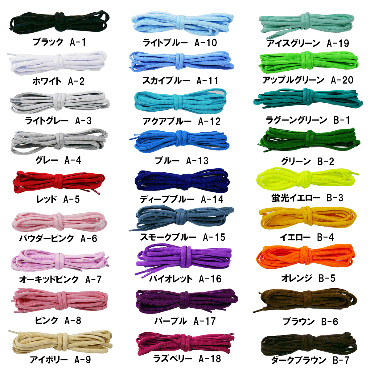 | ※落札後希望のカラー、サイズをご連絡ください。 在庫切れのカラーやサイズがあることがありますので、事前に在庫のご質問をお願い致します。 OVAL SHOELACE オーバルシューレース 丸紐 長さ 120cm,140cm,160cm 幅:8mm 厚み:4mm オーバルシューレース 27カラー ブラック ホワイト ライトグレー グレー レッド パウダーピンク オーキッドピンク ピンク アイボリー ライトブルー スカイブルー アクアブルー ブルー ディープブルー スモークブルー バイオレット パープル ラズベリー アイスグリーン アップルグリーン ラグーングリーン グリーン 蛍光イエロー イエロー オレンジ ブラウン ダークブラウン 120cm アイレット数5~7 adidas:スーパースター・スタンスミス・3MC converse:ジャックパーセル・オールスター (OX) VANS:オールドスクール など 140cm アイレット数6~8 NIKE:エアフォース 1 (LOW)・エアマックス90・ダンク (LOW)・ブレーザー converse:オールスター (HI)・ワンスター・CHUCK TAYLOR (HI) VANS:SK8-HI adidas:サンバ・ガゼル・スーパースター など 160cm アイレット数7~9 NIKE:エアジョーダン 1 (HI)・エアフォース 1 (MID)・ダンク (HI) など AJ1 HIの紐の長さのイメージです。 スニーカー自体のサイズや、通す際の緩ませ具合で、紐の長さは変わりますが、ご参考までに。 ●120cm 7番目の穴まで普通に通して、その後、紐を垂直に8番目の穴へ上げて、垂らす。 ●140cm 8番目の穴まで普通に通して垂らす ●160cm 8番目の穴まで普通に通して結ぶ DUNK LOWの紐の長さのイメージです。 スニーカー自体のサイズや、通す際の緩ませ具合で、紐の長さは変わりますが、ご参考までに。 ●120cm 6番目の穴まで普通に通して垂らす ●120cm 5番目の穴まで普通に通して、6~7番目の穴でバッテンを作る ●140cm 7番目の穴まで普通に通して結ぶ 関連商品多数出品中!! ↓ クリック ↓ ![]() ※当店は全商品送料込の価格となっております。 ※振込み金額は、落札価格のみです。 | |||