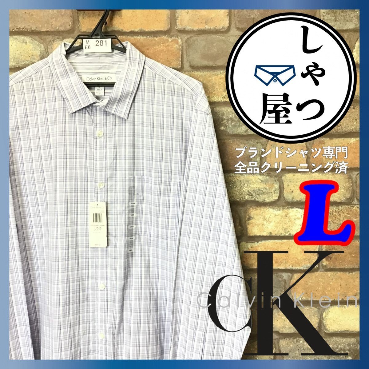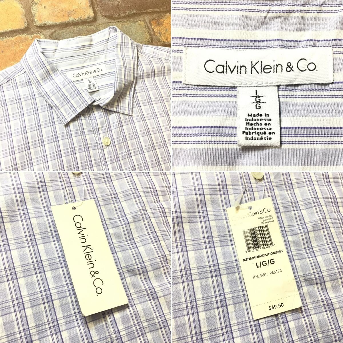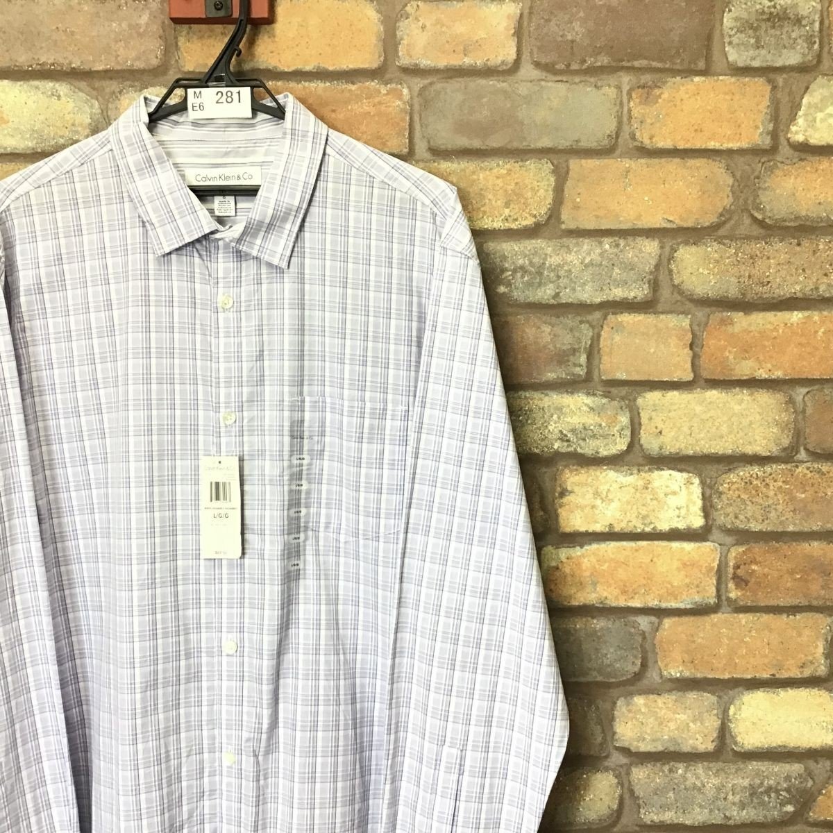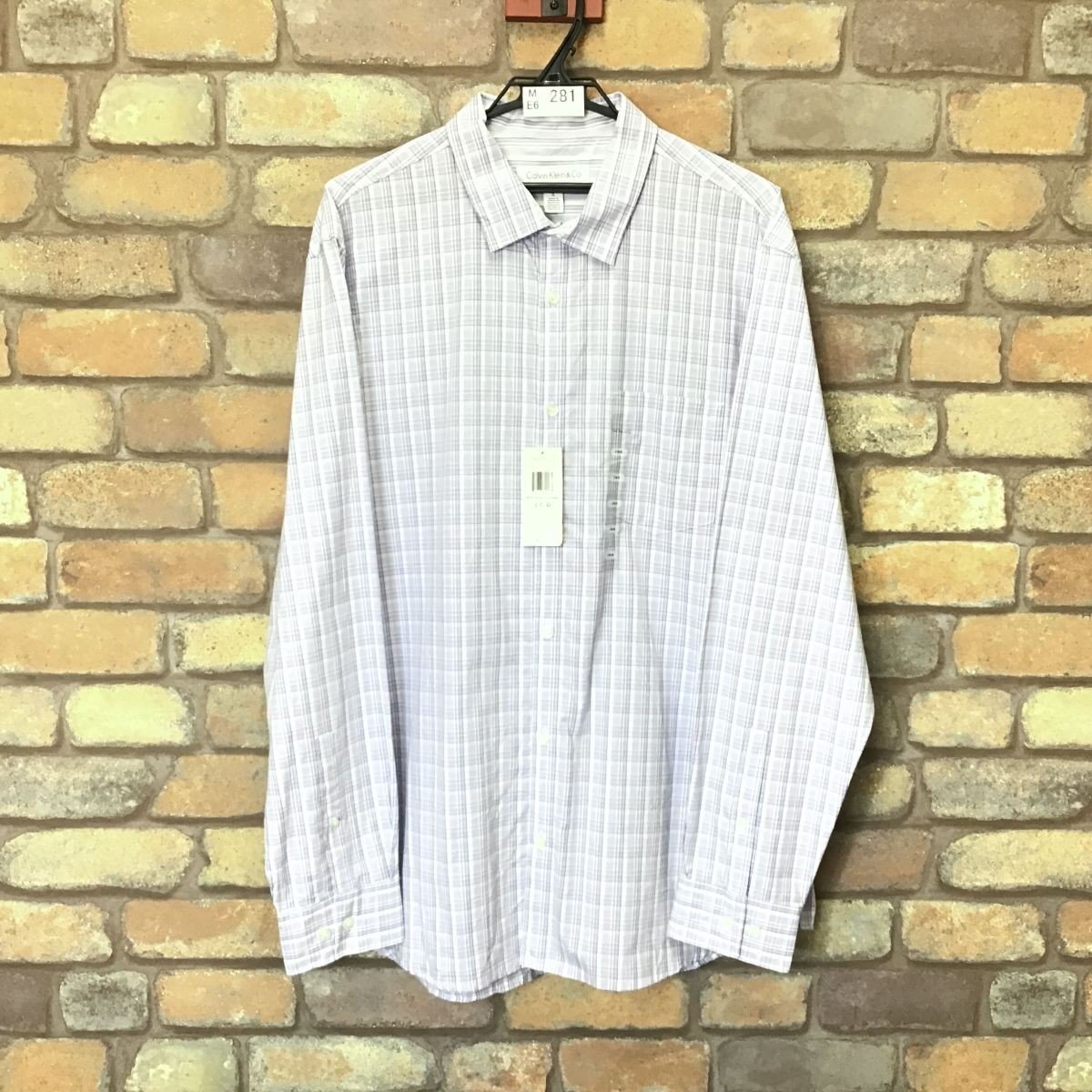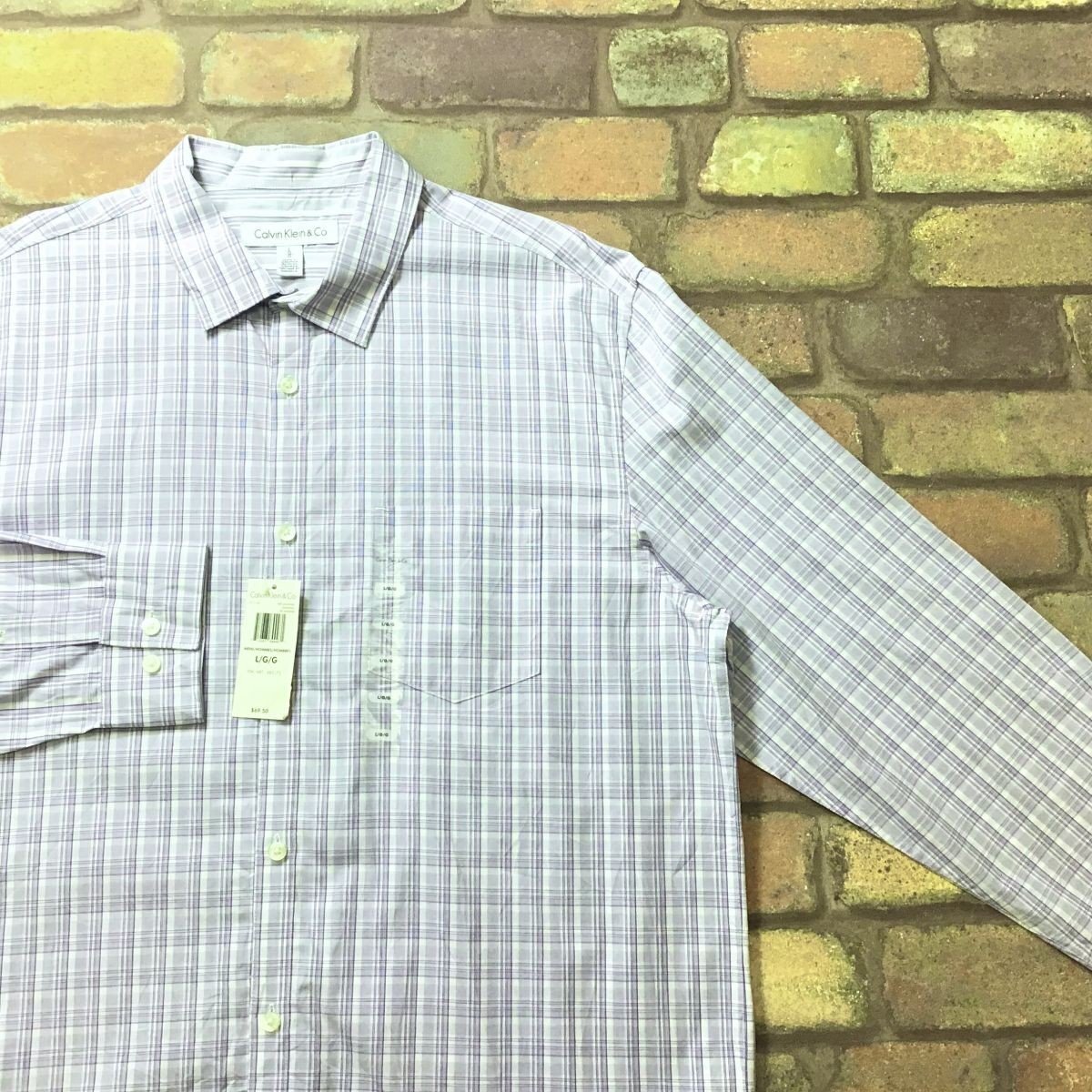 ME6-281★デッドストック★USA購入品【Calvin Klein&Co. カルバンクライン】長袖 チェック コットンシャツ【メンズ L】薄紫 長袖シャツ