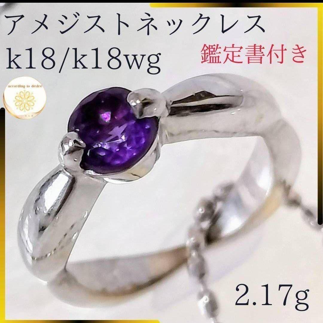 k18 k18wg amethyst necklace 2.17g with certificate of authenticity February birthstone