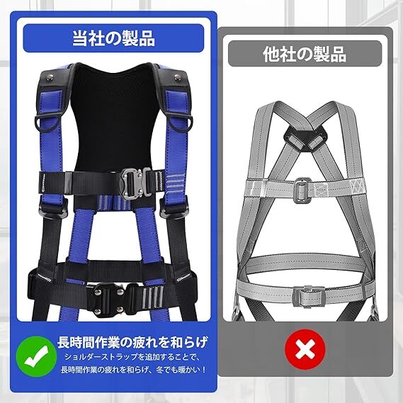 軽量設計で、長時間の装着でも疲れにくいフルハーネスです。