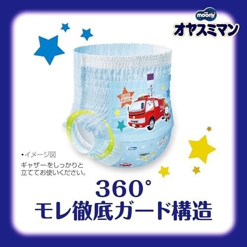 夜のスペシャルデザインでおむつを嫌がるお子様にも気に入って履いてもらえます。