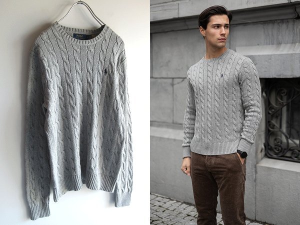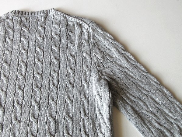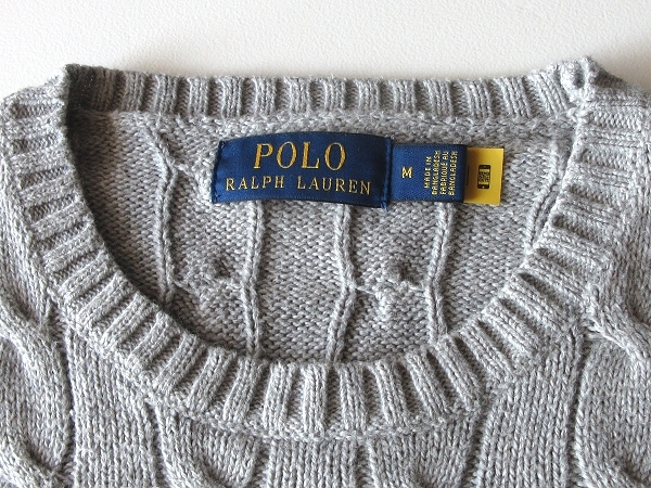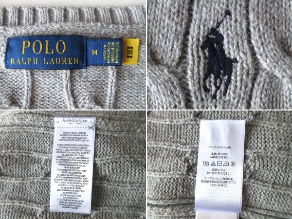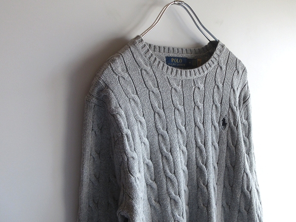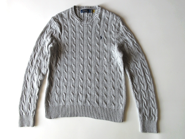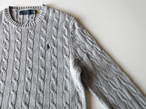 現行/QRコードタグ POLO RALPH LAUREN ラルフローレン ポロポニーロゴ刺繍 コットンニット ケーブルニット M グレー 国内正規品