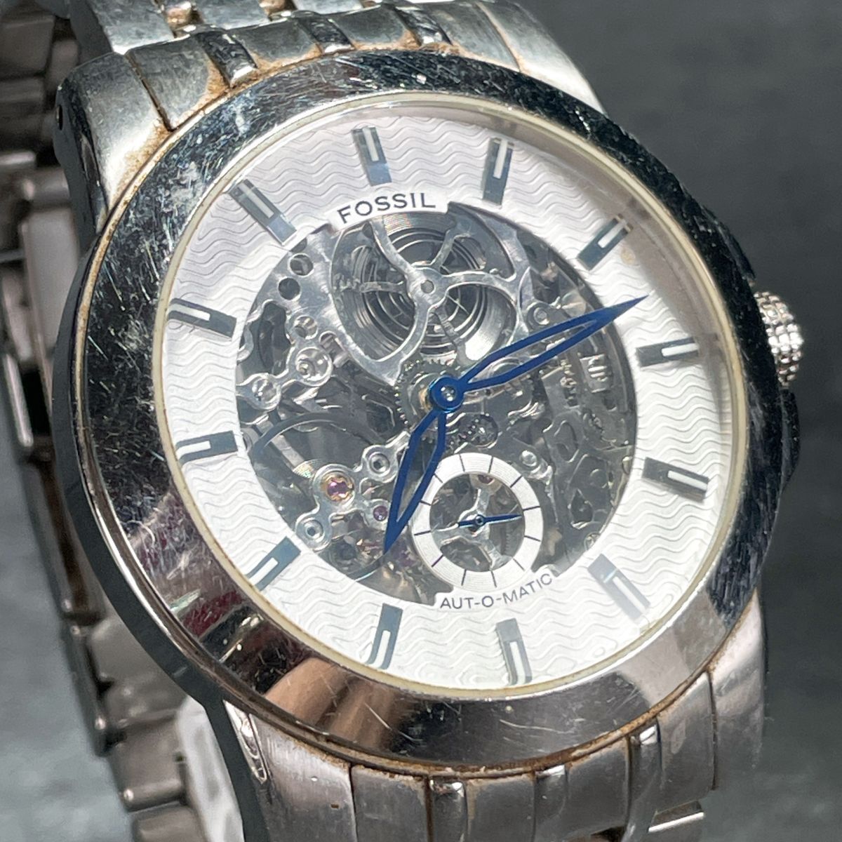 FOSSIL フォッシル ME1028 腕時計 アナログ 自動巻き スケルトン 3針 スモールセコンド メタルバンド シルバー ラウンド 動作確認済み