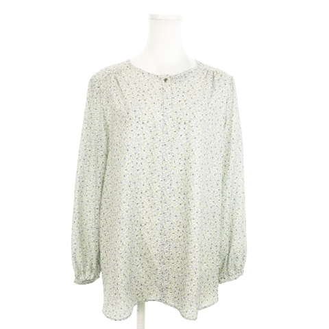 ミッシェルクラン MICHEL KLEIN ブラウス ラウンドネック 長袖 小花柄 総柄 とろみ きれいめ 38 グレー /AO8 レディース