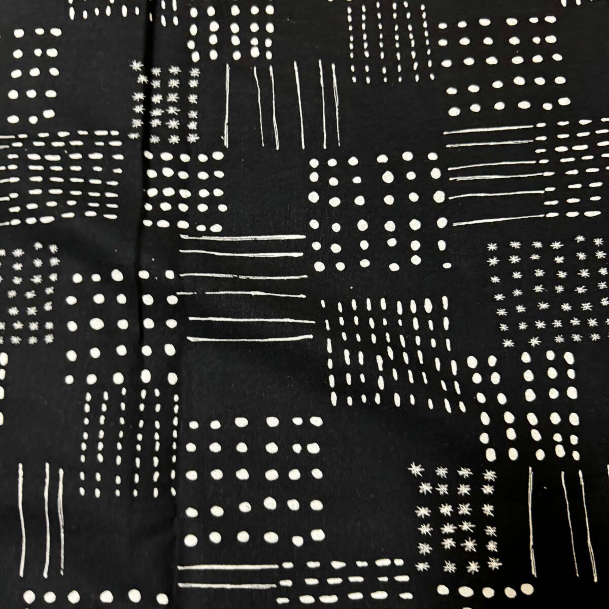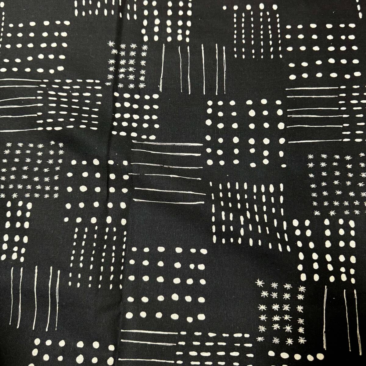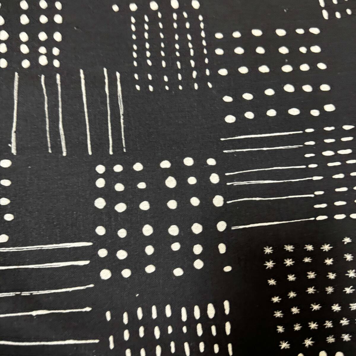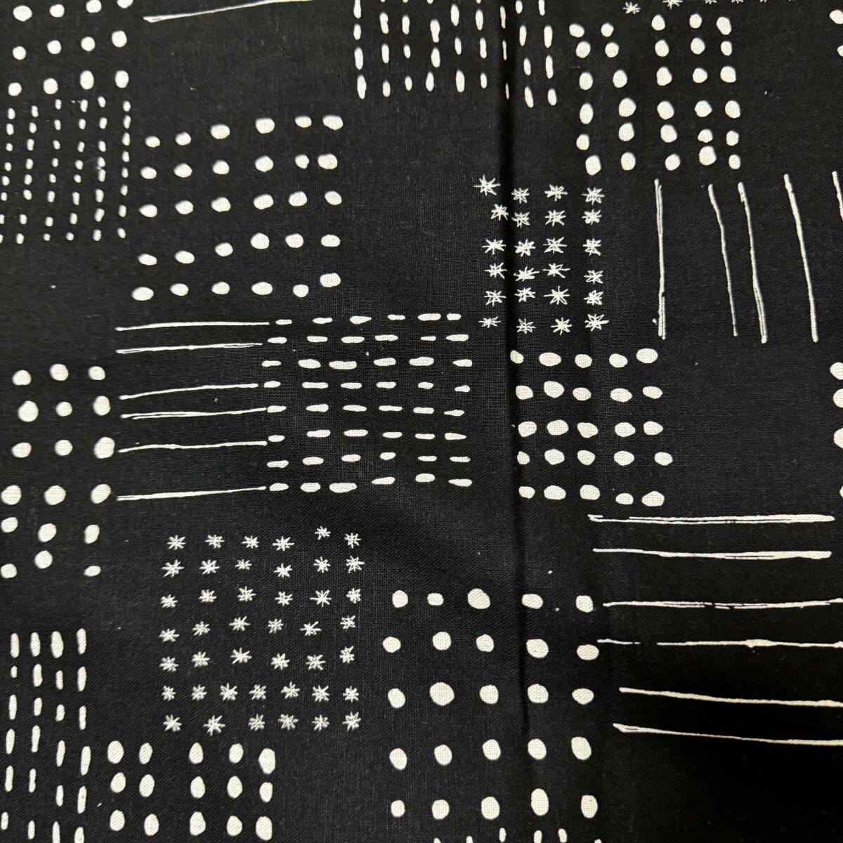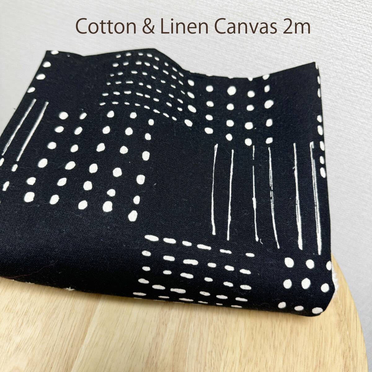 2m和モダン手書き幾何学模様綿麻キャンバス生地はぎれ布コットンリネン点線ブラック