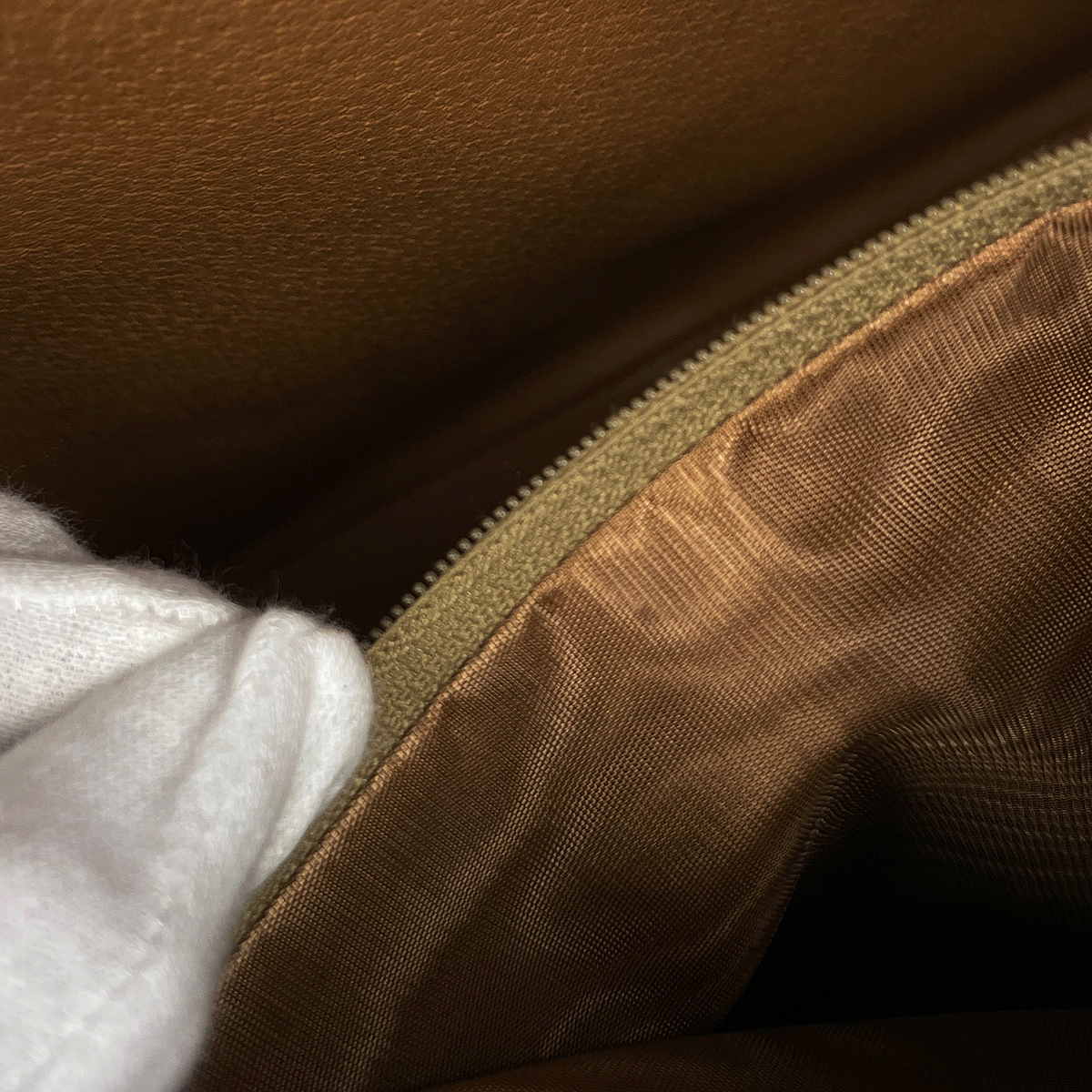 | 《全体》型崩れ、生活臭、スレ、キズ、汚れ 《内ポケット》シミ 《金具》小キズ、色剥がれ 《開口部内側》亀裂 《ファスナー周り》毛羽立ち 《ファスナープル》剥がれ 《保存袋》劣化 |