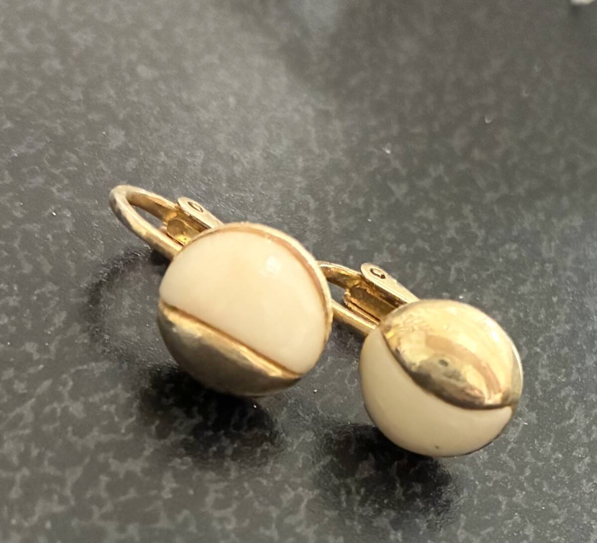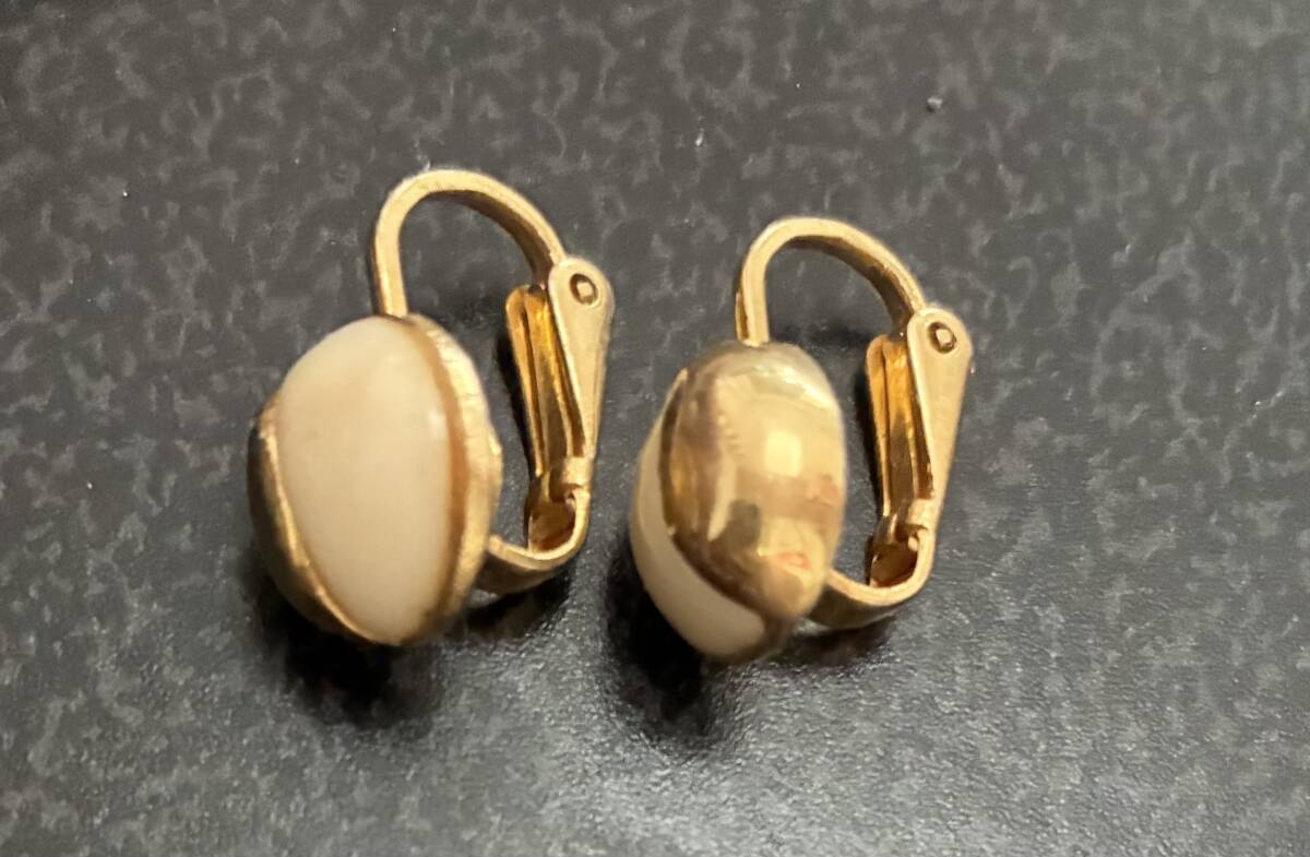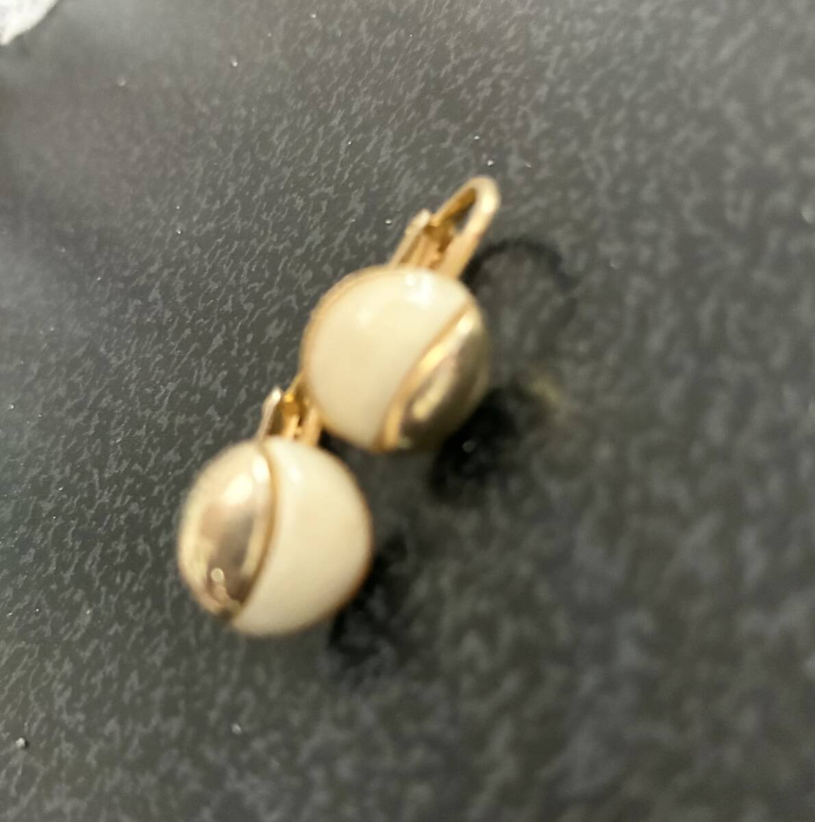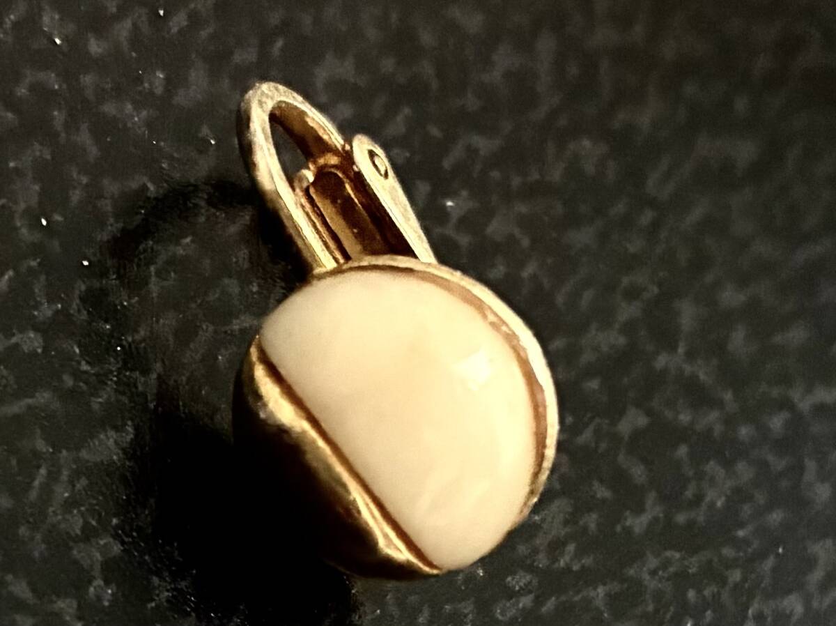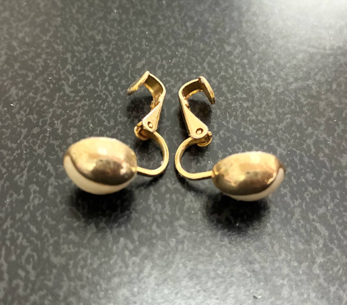 クリーム色と金色の球体デザインのイヤリング、クリップ式留め具で着脱簡単です。