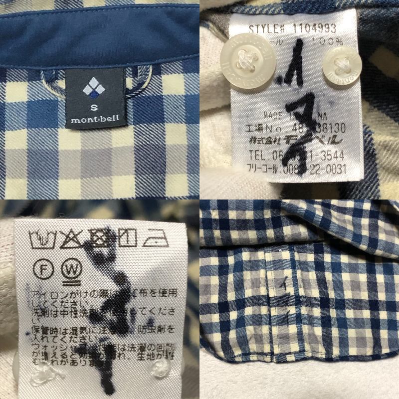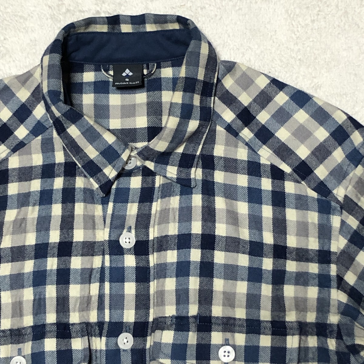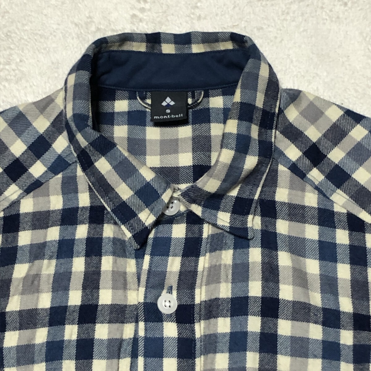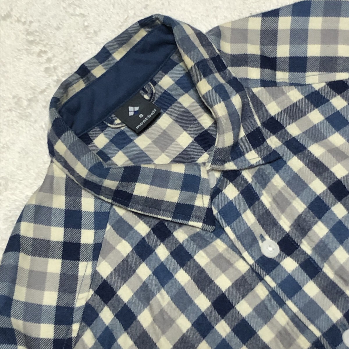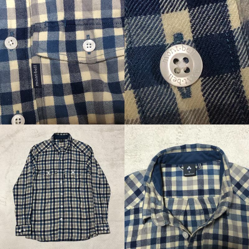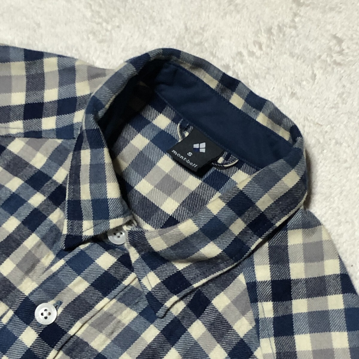mont-bell モンベル メリノウール トレールシャツ 長袖シャツ ネイビー系チェック柄 Sサイズ