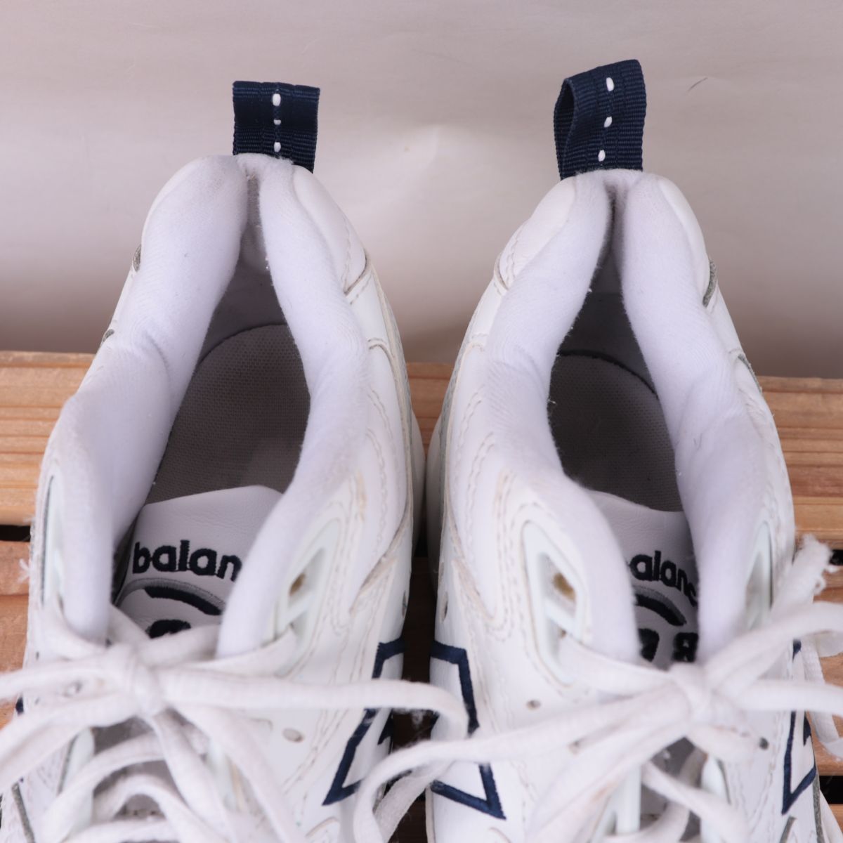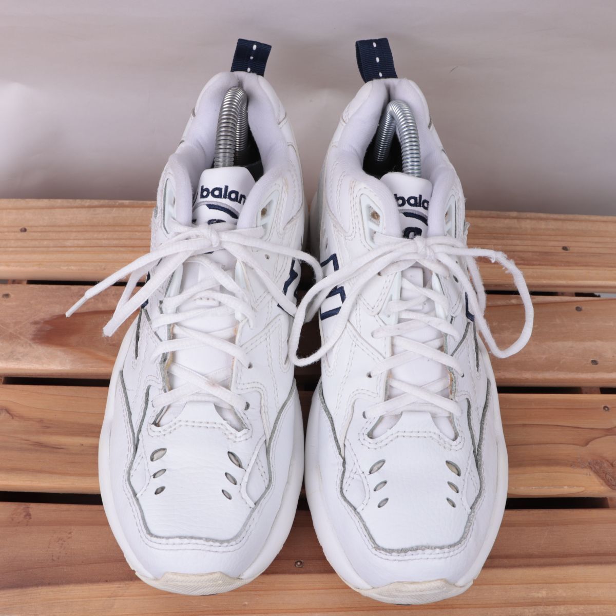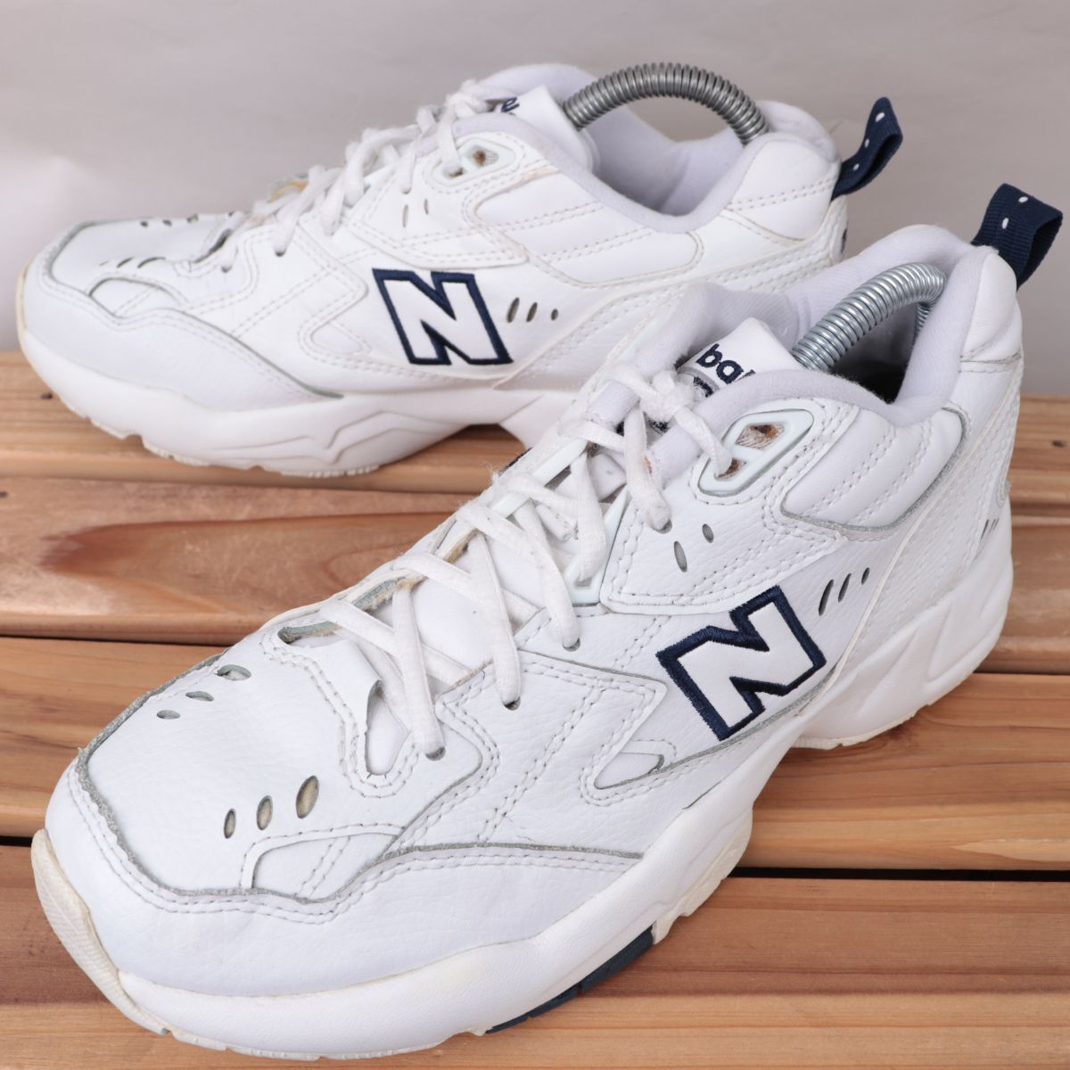 z2282【608】ニューバランス US7.5 25.5cm/白 ホワイト 紺 ネイビー newbalance メンズ スニーカー 中古