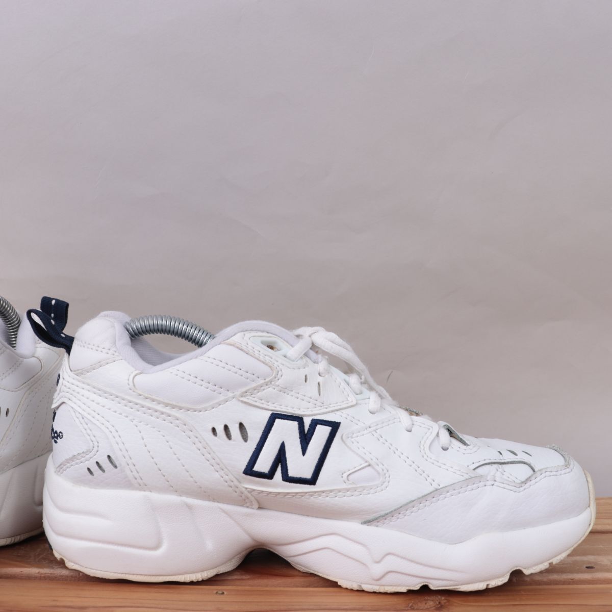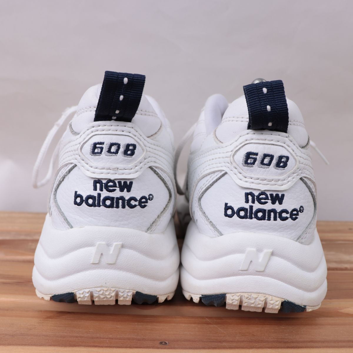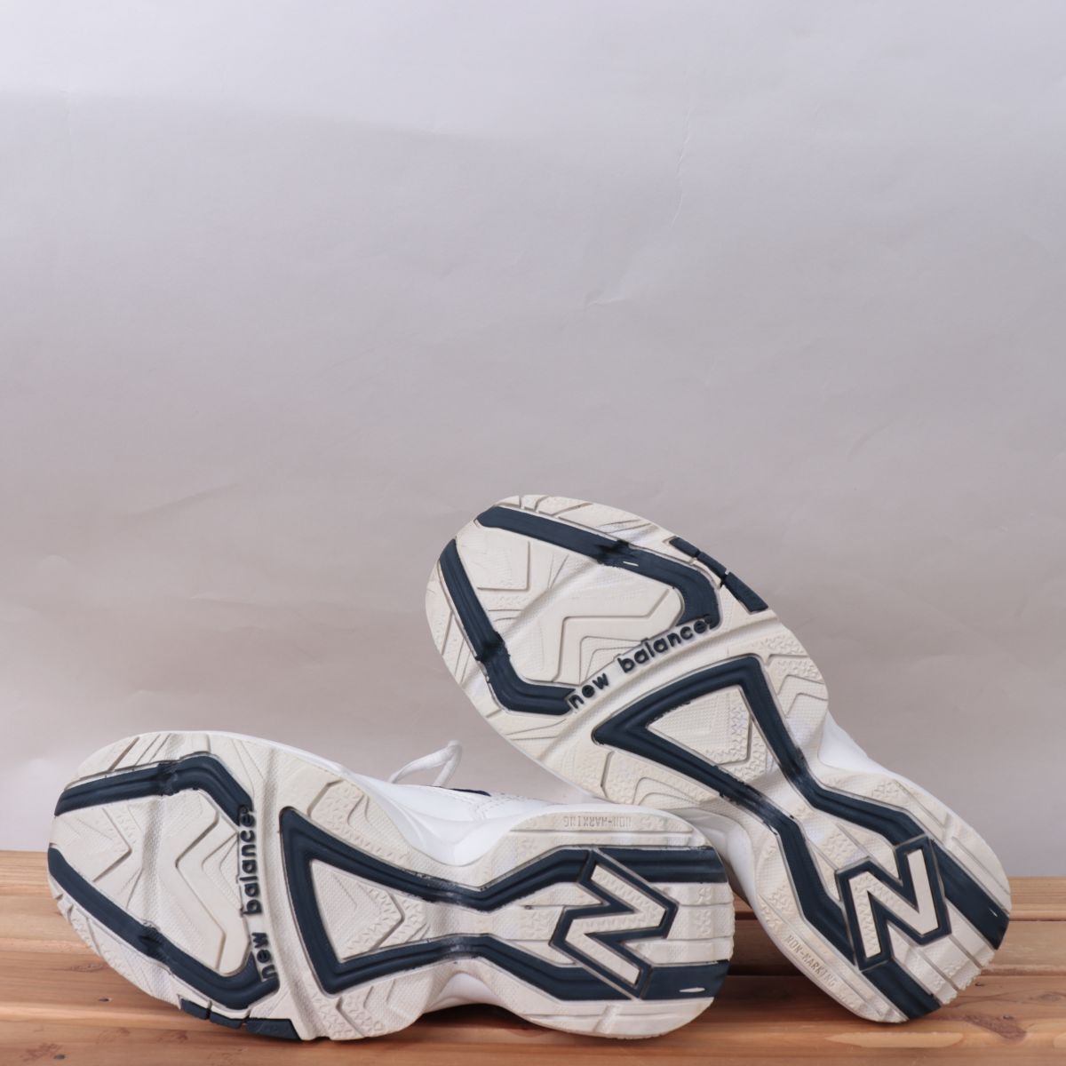 z2282【608】ニューバランス US7.5 25.5cm/白 ホワイト 紺 ネイビー newbalance メンズ スニーカー 中古