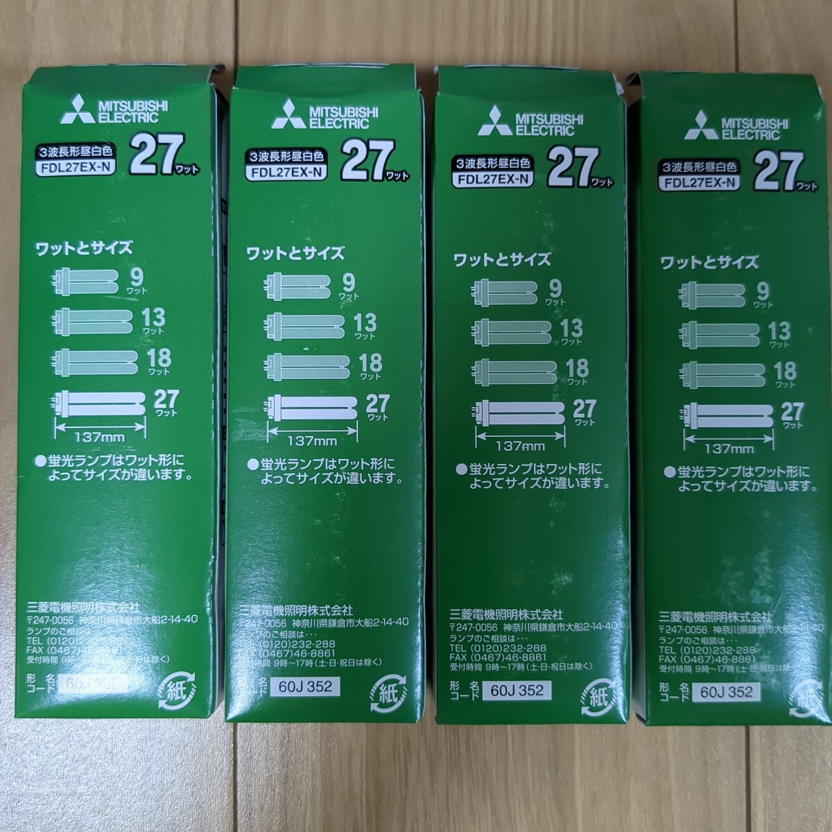 MITSUBISHI ELECTRICのコンパクト形蛍光ランプ、FDL27EX-Nの4個セットです。