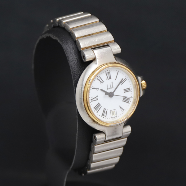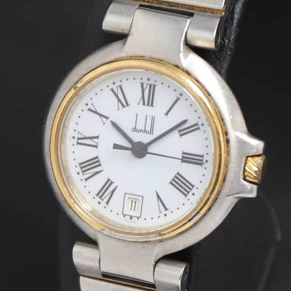 1円 稼働 QZ ダンヒル 12.61443 白文字盤 デイト レディース腕時計 3835000 9BJY KRK