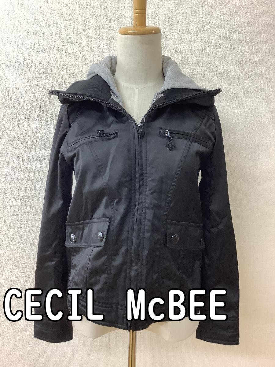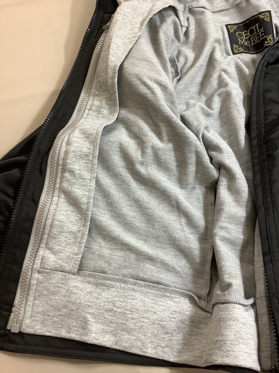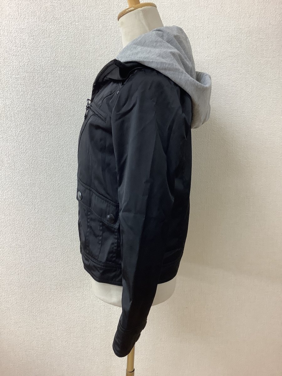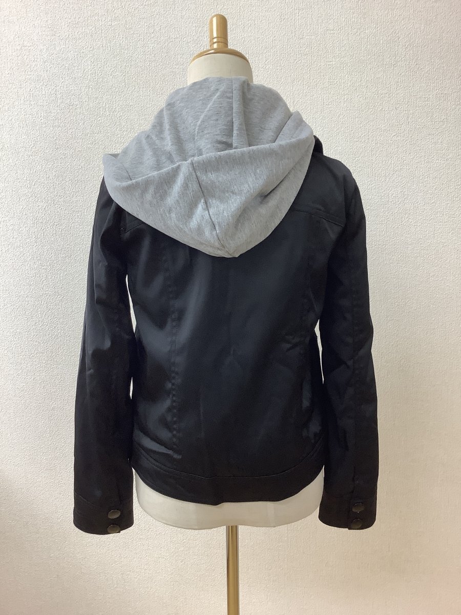 管理番号:10^138447 セシルマクビー (CECIL McBEE) 黒ブルゾン グレーパーカー付き(取り外し可能) 表示サイズ:M 実寸(参考)