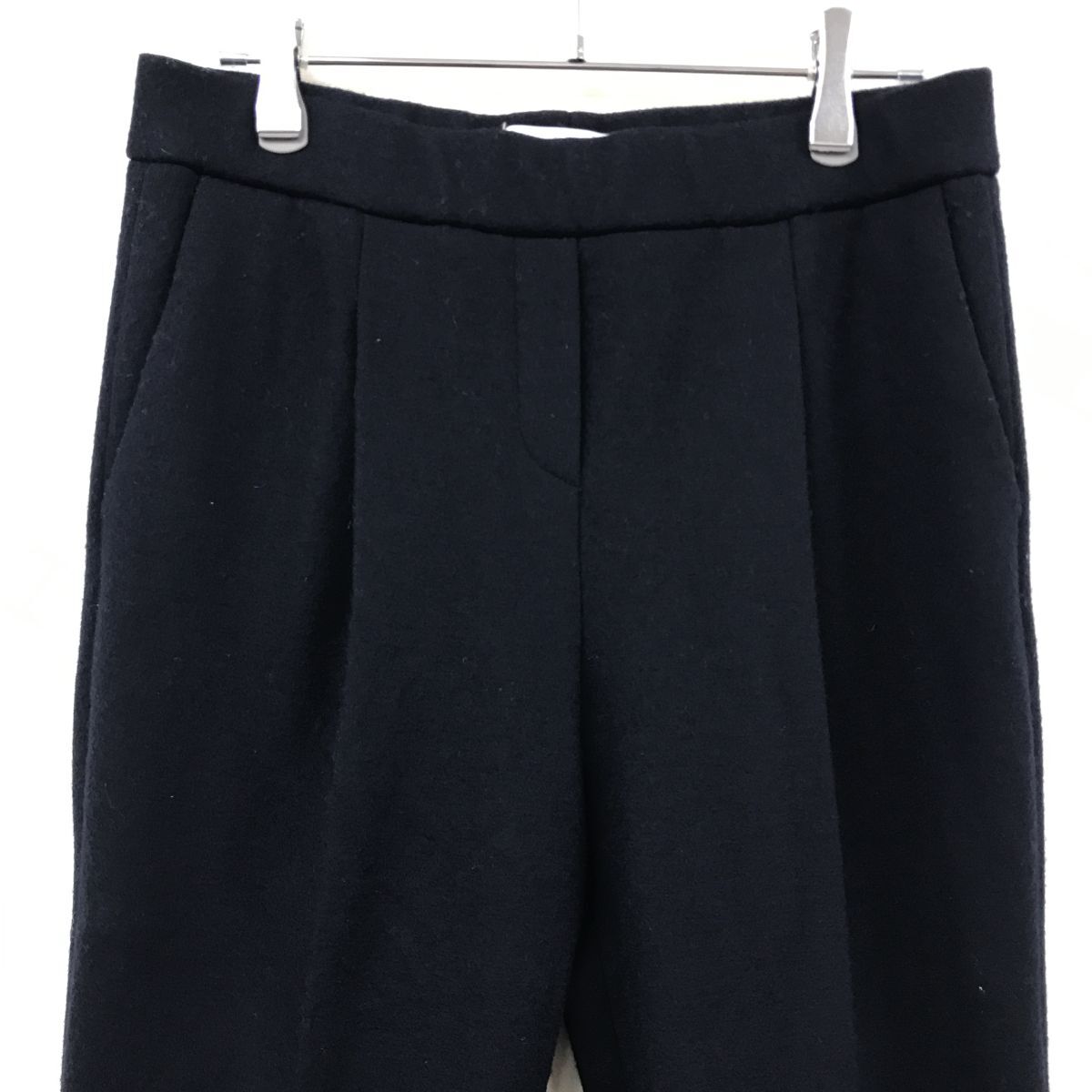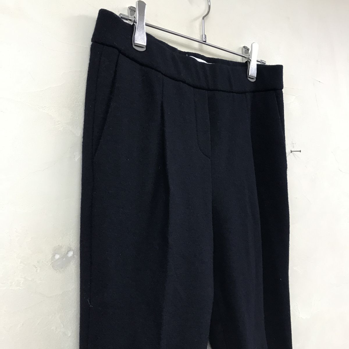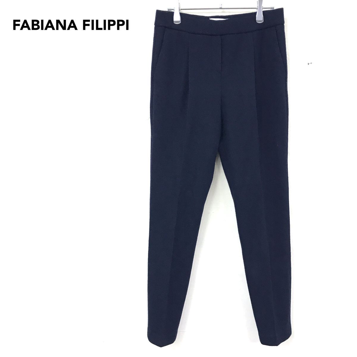 2K2854-W◆FABIANA FILIPPI ファビアナフィリッピ イージーパンツ スラックス 裏地なし センタープレス ゴムウエスト◆size:XS ネイビー 毛