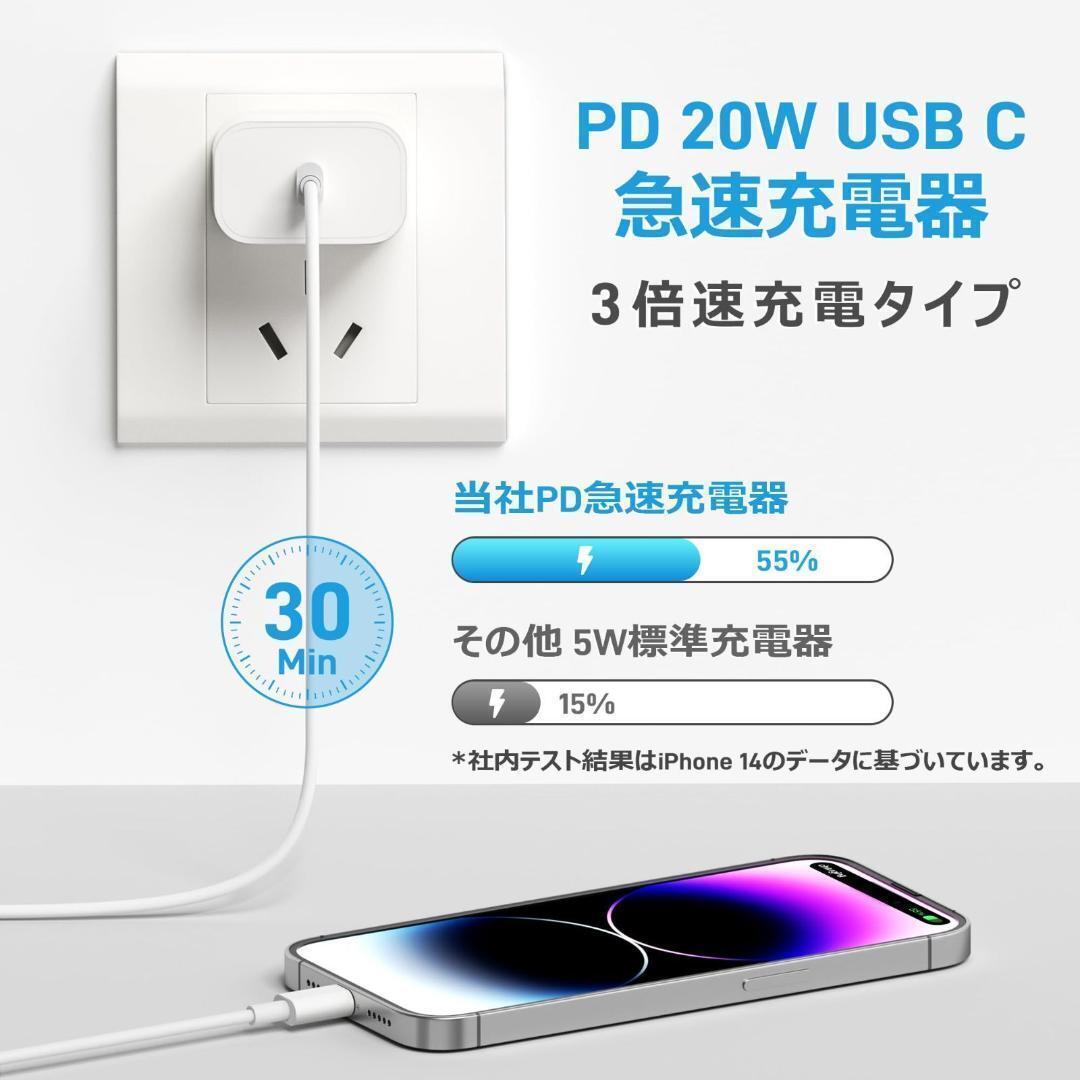 【20W-超高速iPhone急速充電器】弊社のiPhone急速充電器はPower Delivery3.0の充電技術を採用して、 通常の5W出力のiphone充電器に比べ、最大3倍速く充電できるiphone充電器です。QC3.0 USB-C電源アダプタは最大出力が20Wで、 わずか30分でiPhone14の充電が65%になると、1時間以上節約できます。Quick Charge 4.0/3.0/2.0急速充電と 互換性があります。(独自のテストデータに基づくテスト)。