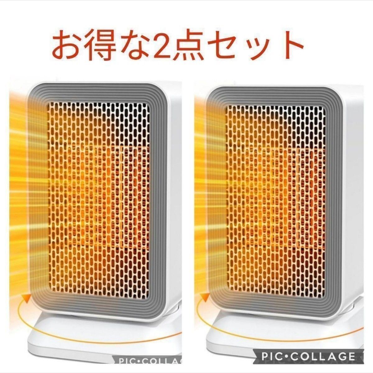 お得な2点セット セラミックヒーター 小型 3秒速暖 3段階切替 首振り タイマー 自動オフ機能 過熱保護 静音 省エネ 暖房器具