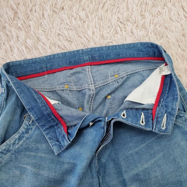 ブランドタグなしです。前ももに汚れ、タグにがれがありますが、致命的な汚れやダメージなどなく、まだまだお使いいただける綺麗な状態です。