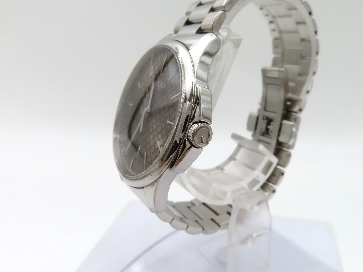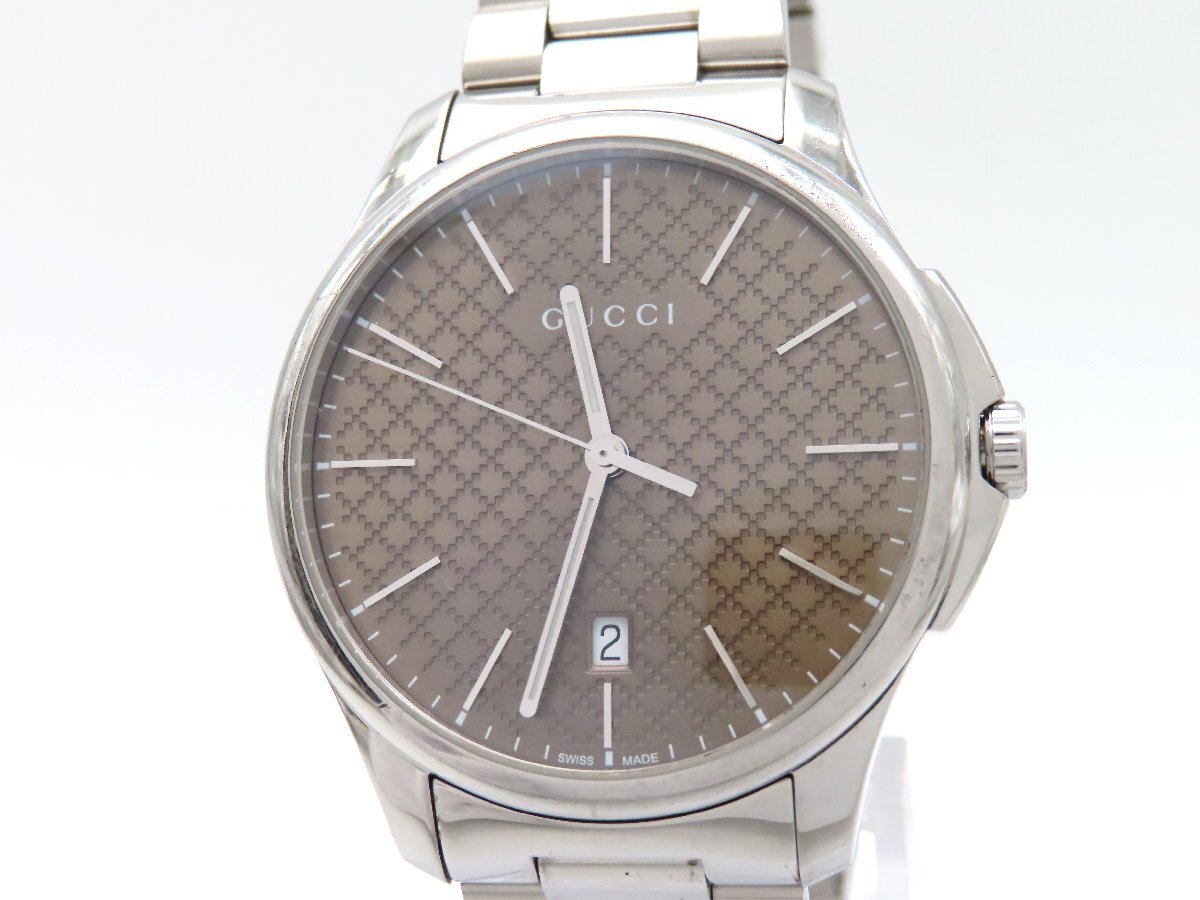 1円 グッチ 126.3 Gタイムレス SS ブラウン文字盤 メンズ 稼働 QZ 25876 NKRL