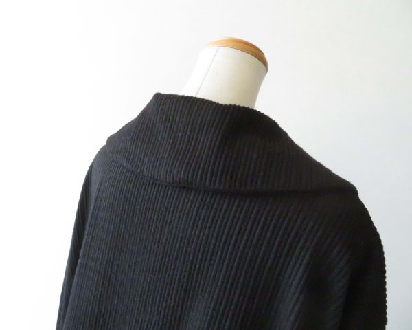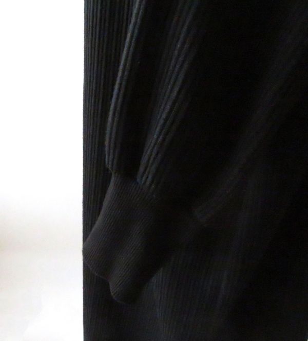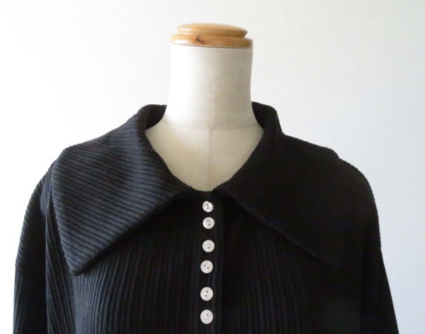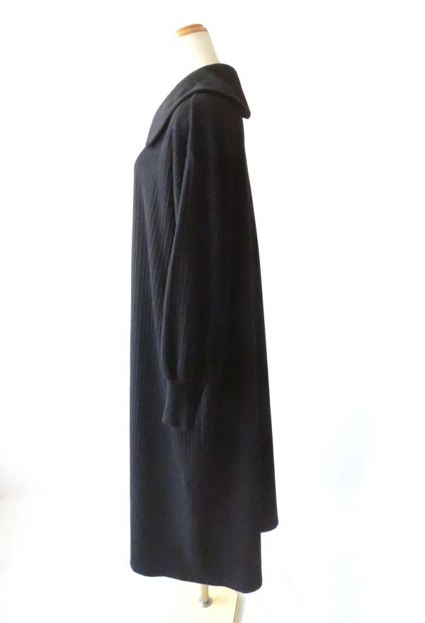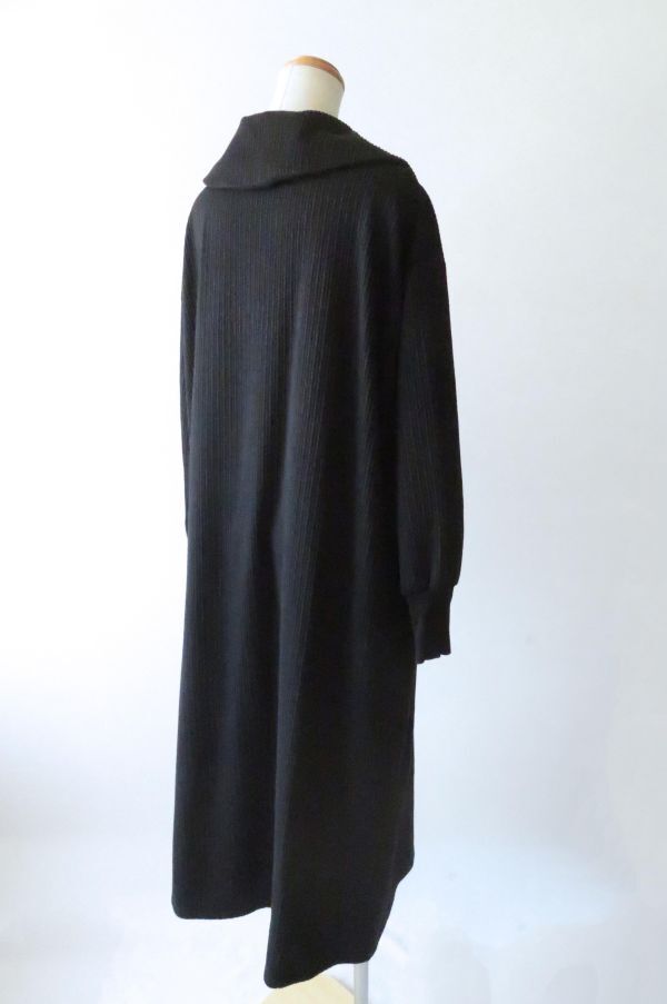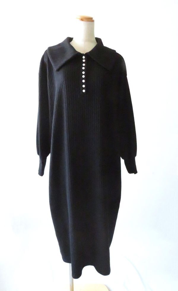 詳細 | 中手の織り伸縮地です。気持のいい肌触りのソフトな程よい厚みの縦立体ライン織黒の素敵な風合いです。襟デザインや前ボタンラインなどさりげなくきちんとおしゃれなムードを作ってそのまますとんと着て可愛さが出るワンピースドレスです 。 状態は綺麗なものです。 |