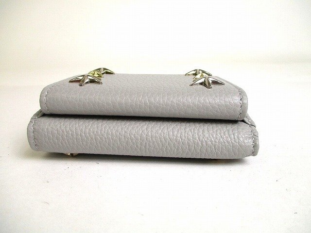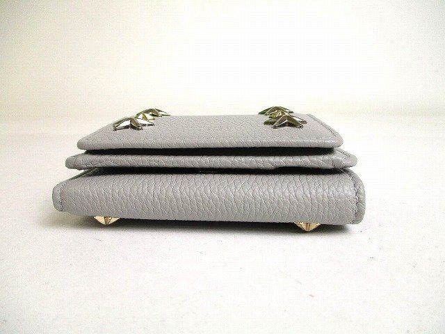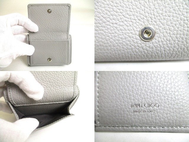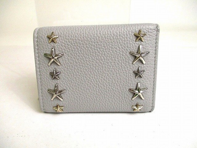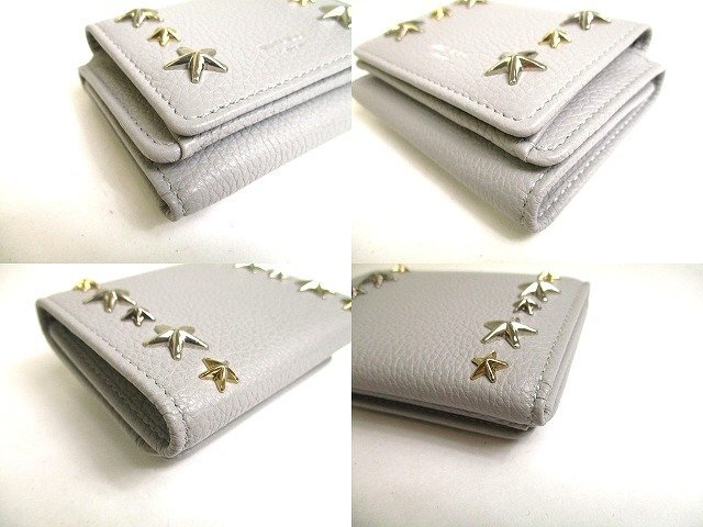 a354 【未使用保管品】 Jimmy Choo ジミーチュウ スタースタッズ カーフレザー Nemo 3つ折り 財布 コンパクト財布 メンズ レディース 未使用保管品の為とても綺麗なお品です(新品同様の状態ですが、未開封の新品ではないので一見わかりにくい些細な傷や汚れは御了承くださいませ。) 【ブランド】Jimmy Choo 【カラー】グレー 【素材】カーフレザー 【サイズ】幅:約10-21cm 高さ:8cm 奥行き:約3cm ※あくまでも実寸なので多少の誤差はあるかもしれませんのでご了承ください。 【参考定価】60,500円 【製造刻印】- 【型番】NEMO 【機能】札入れ×1、小銭入れ×1、カード入れ×3、ポケット×- 【付属品】取扱説明書、ギャランティーカード、箱 【商品状態 】A ランク |