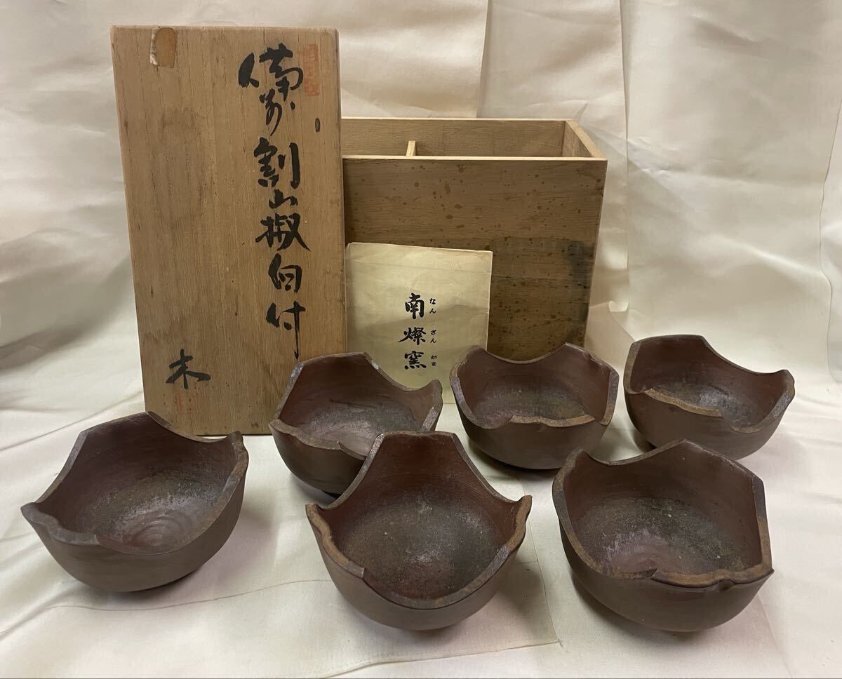 | 商品説明 | 備前 割山椒向付6客【南燦窯】 1客欠けてしまってます。 共箱はテープ跡、水跳ね、シミ等あります。 4客刻印はありますが、何故か2客は刻印ありません。 画像が全てです 良くご確認下さい。 |