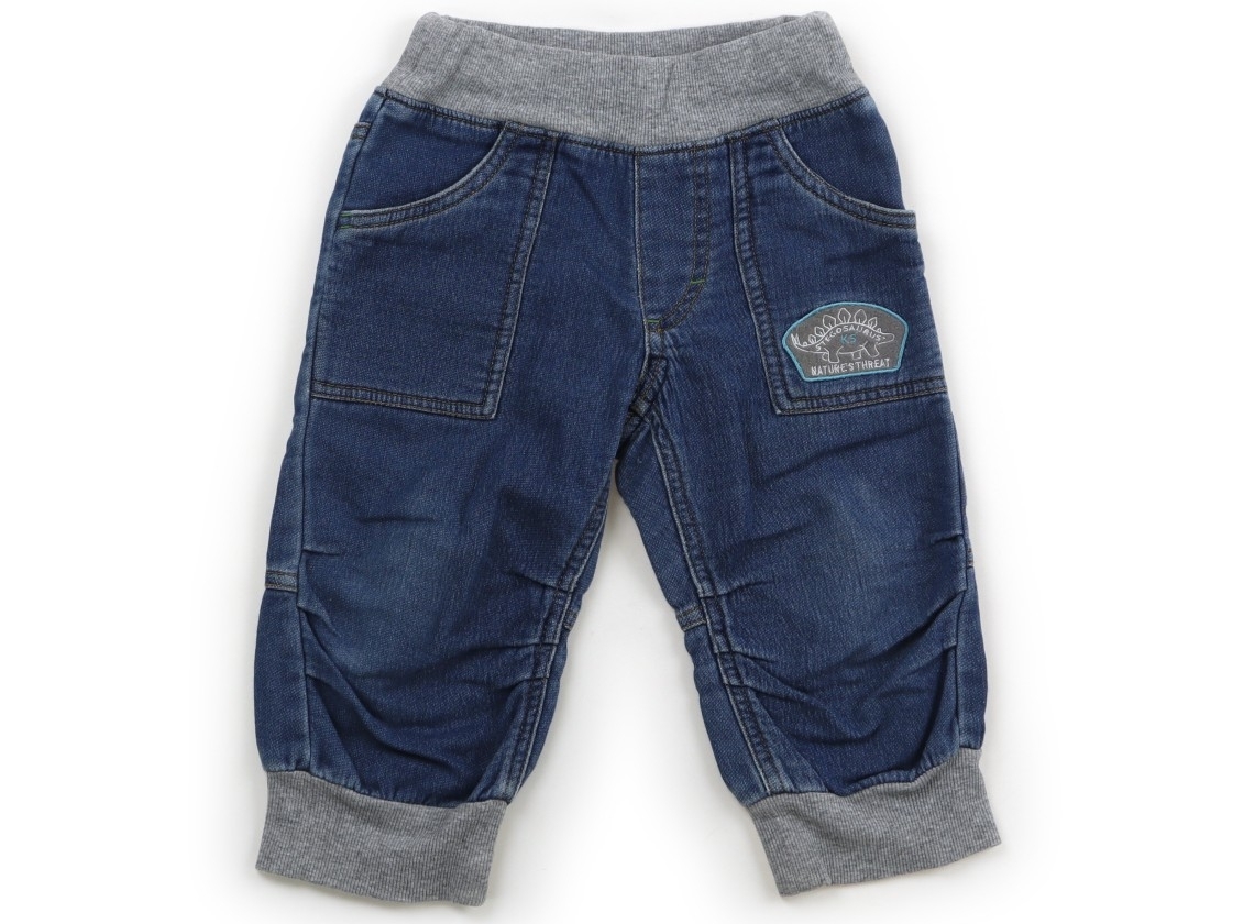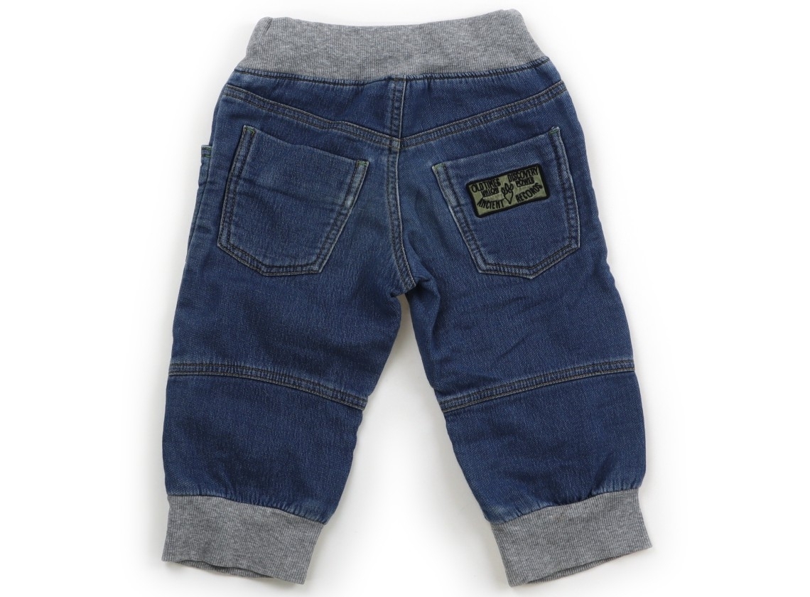 デニムカットソー。サイズ調整ゴムが付いています。膝にタック入り。全体的に使用感がありますが、特に目立つ汚れはなくまだお使い頂けそうです。