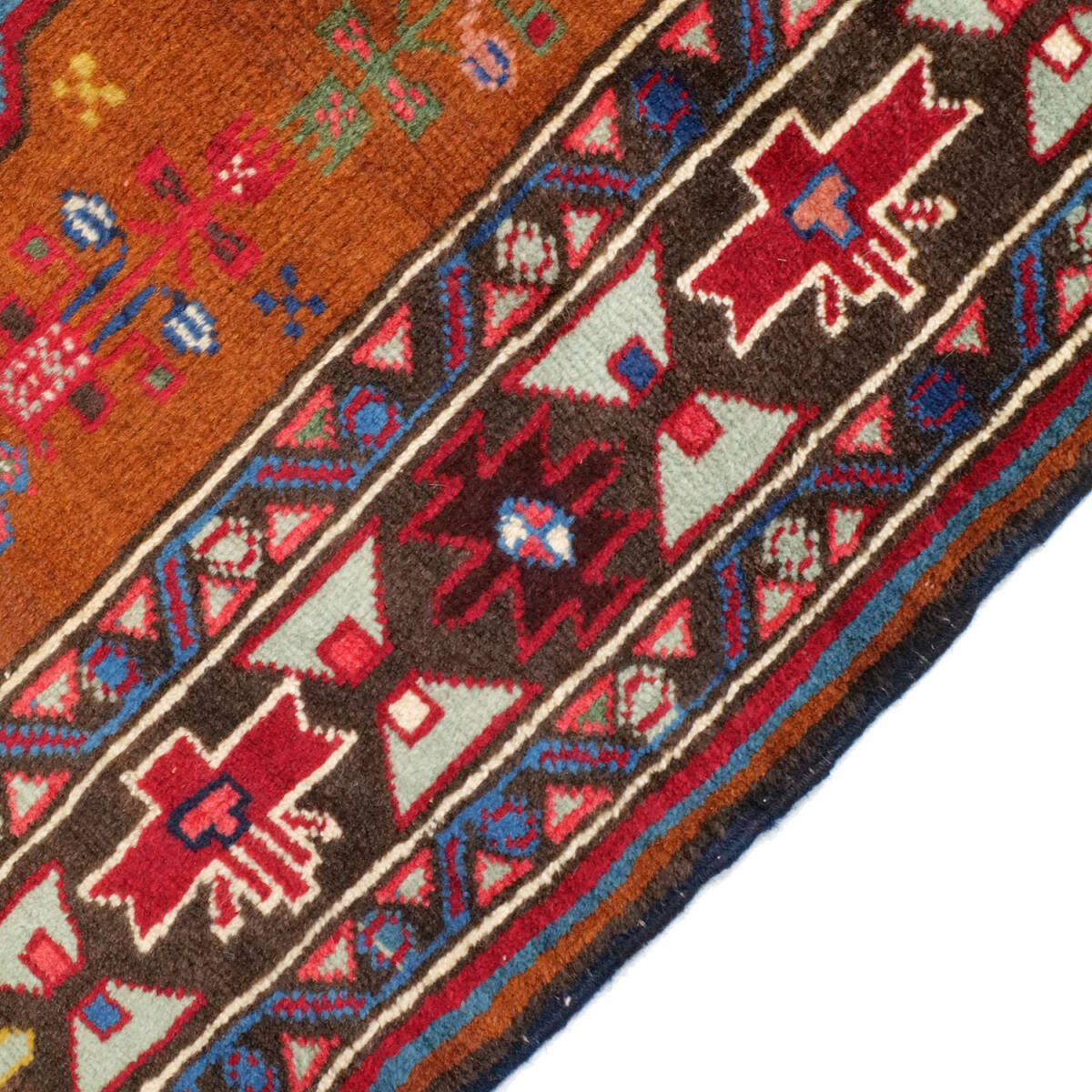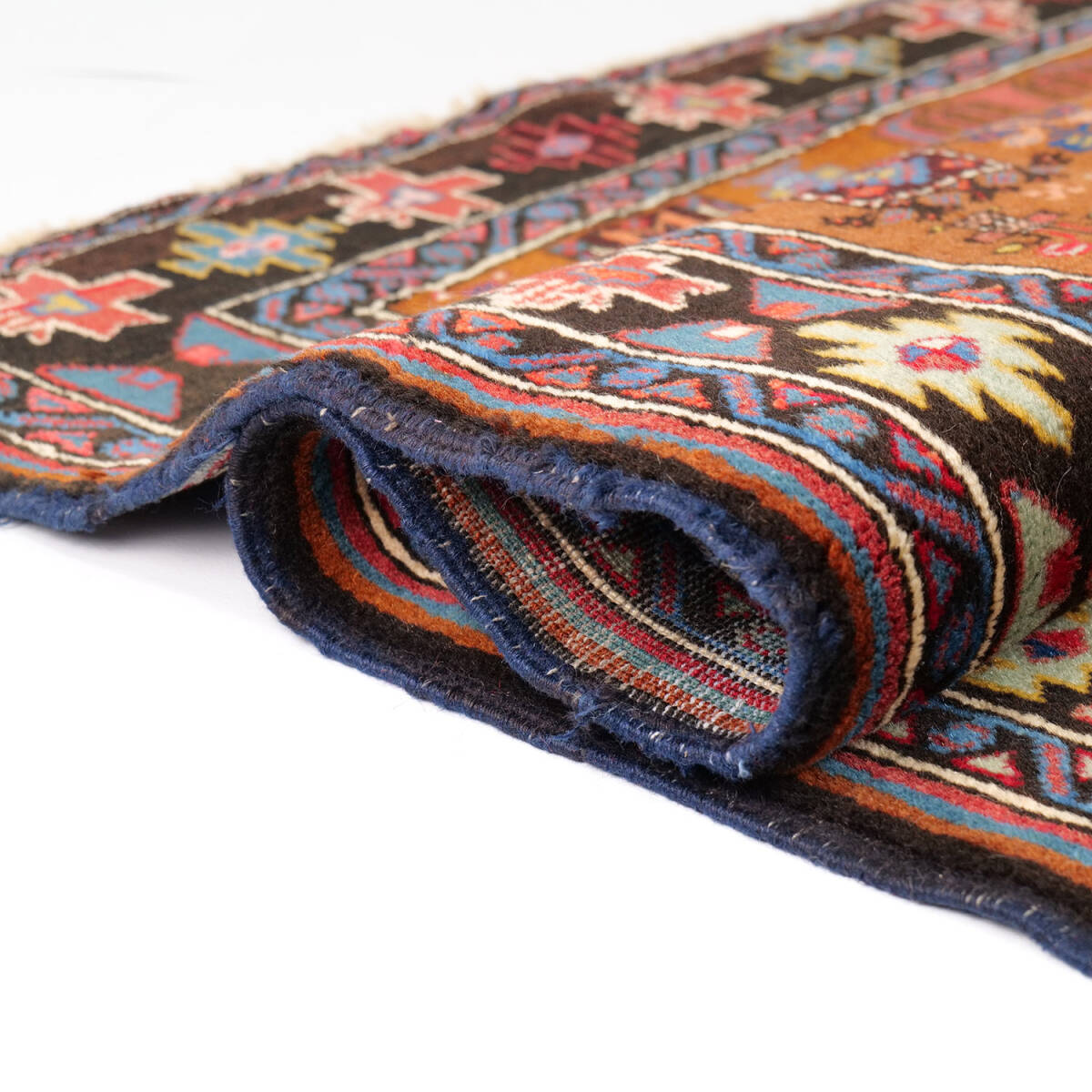 ザーボルラグは丈夫な織りと華やかなデザインが特徴で、床に敷いた際に空間全体を明るく引き立てます。実用性に優れると同時に、芸術的な価値も兼ね備えたセミアンティークの一枚です。