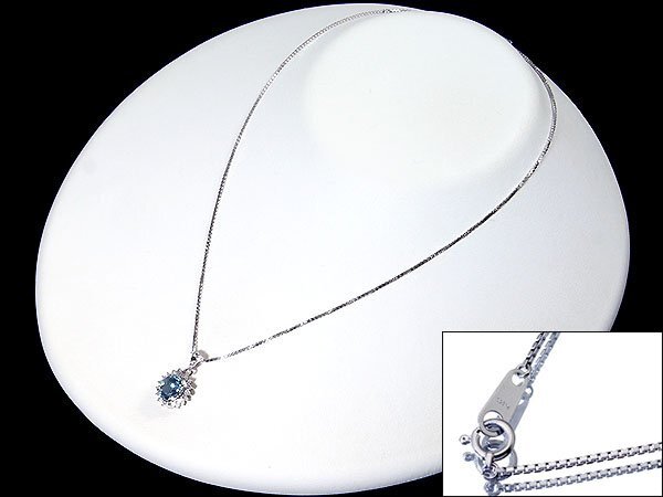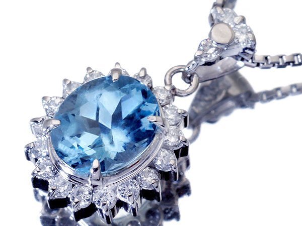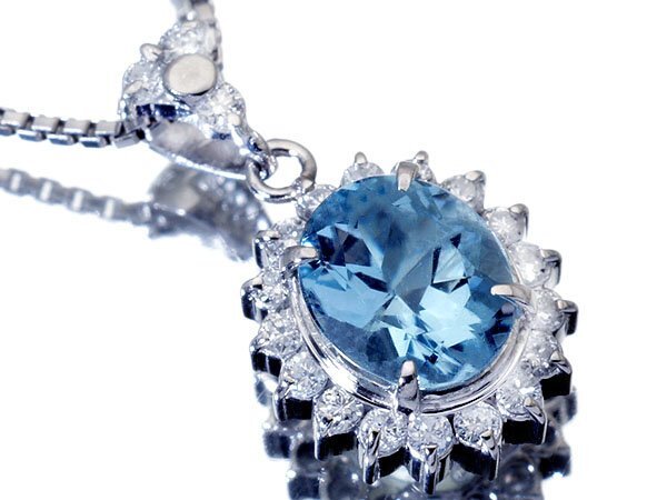 爽やかな色合いの良質天然アクアマリン1.45&ダイヤモンド総計0.30ctを素敵に宝飾した、高級Pt900&Pt850ペンダントネックレスを1円から特別大放出致します!