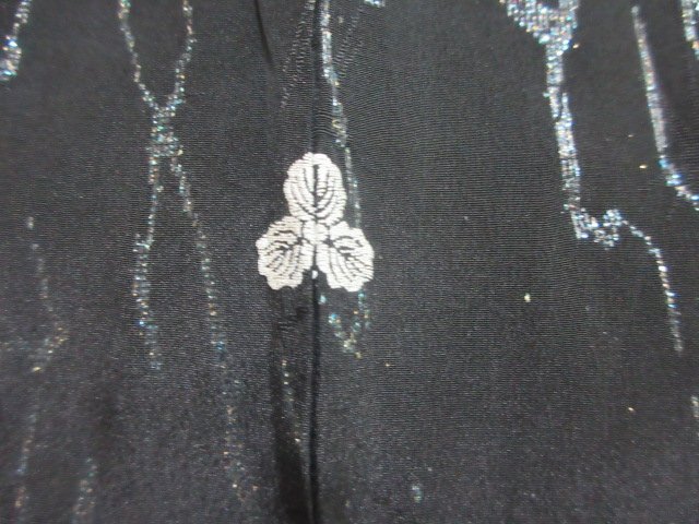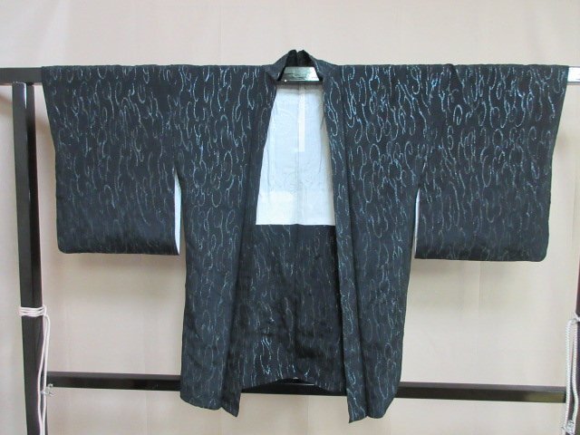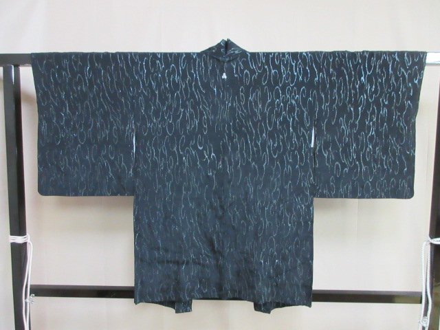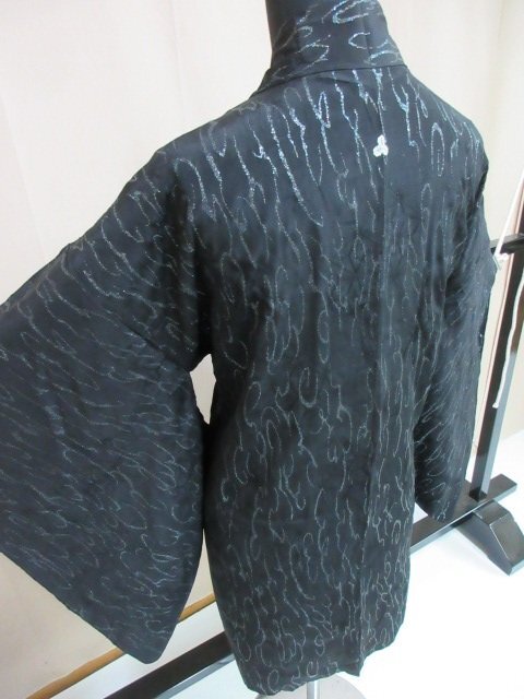 | 商品名 | 1円 良品 羽織 正絹 和装コート 縮緬 黒 紋つき 麻の葉 幾何学 抽象 おしゃれ 高級 袷 身丈79cm 裄62cm【夢職】★ |