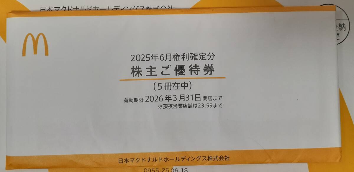 【匿名配送無料】マクドナルド 株主優待券5冊セット ~2026/3/31