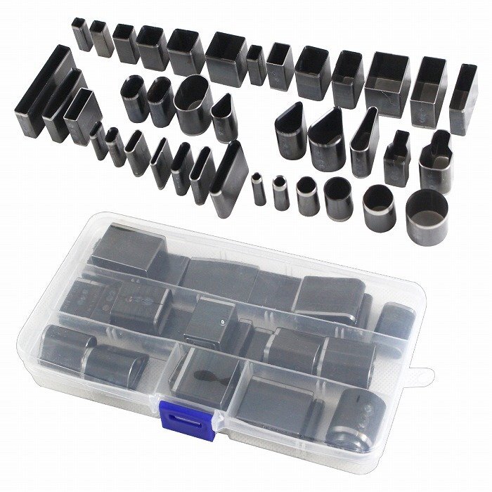 【新品即納】39個 セット 型抜き 革 抜き型 レザークラフト 工具 道具 ポンチ 型 シェイプ パンチ 金型 穴あけ 四角 長方形 楕円 手帳 DIY