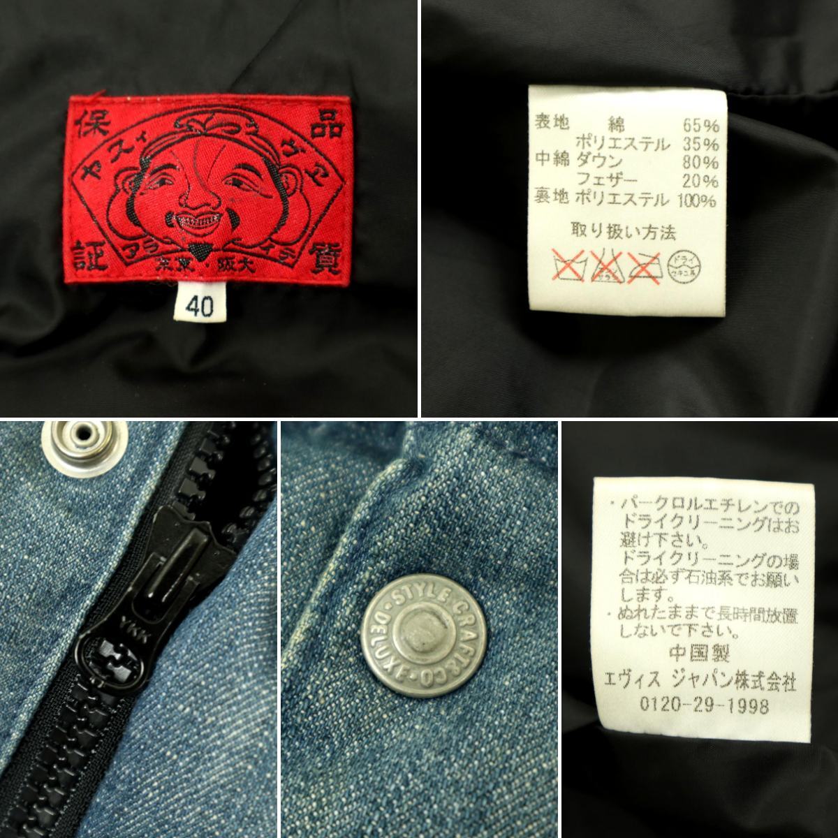 ブランド名:EVISU サイズ:40 肩幅:41cm 身幅:55cm 袖丈:-cm 着丈:58cm 裄丈:-cm 色 :ブルー 状態:所々汚れ、デニム特融の使用感がございますが、ご使用に差支えのない商品です(写真でご確認ください) ※状態の確認は慎重に行っておりますが、僅かな薄汚れや、キズ、糸飛びなどがある場合がございます、古着(中古品)にご理解いただける方のみ入札お願いいたします |