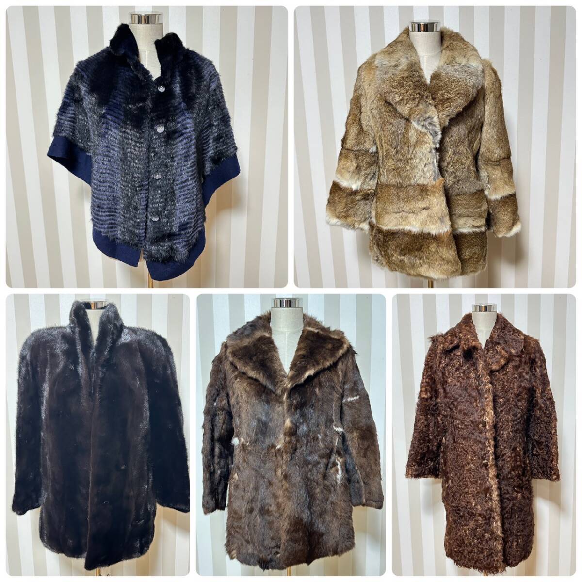 ★1円〜【毛皮5点まとめ】 ミンク フォックス 毛皮 本毛皮 高級 ファー アウター コート ブルー ブラウン系 レディース まとめ K101135