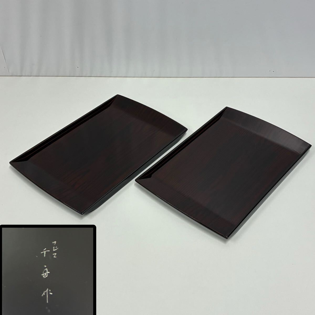 | 輪島塗 千舟作 漆器 お盆 2点 幅約30.5×19.6cm (管理番号w-20) |