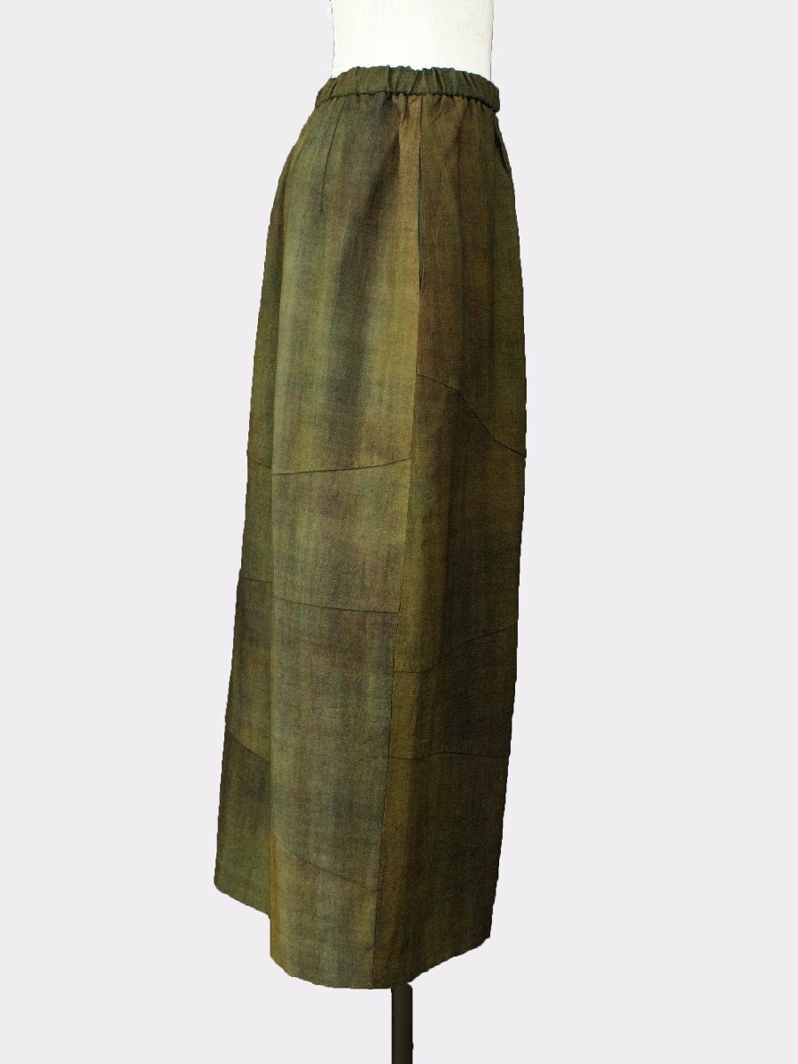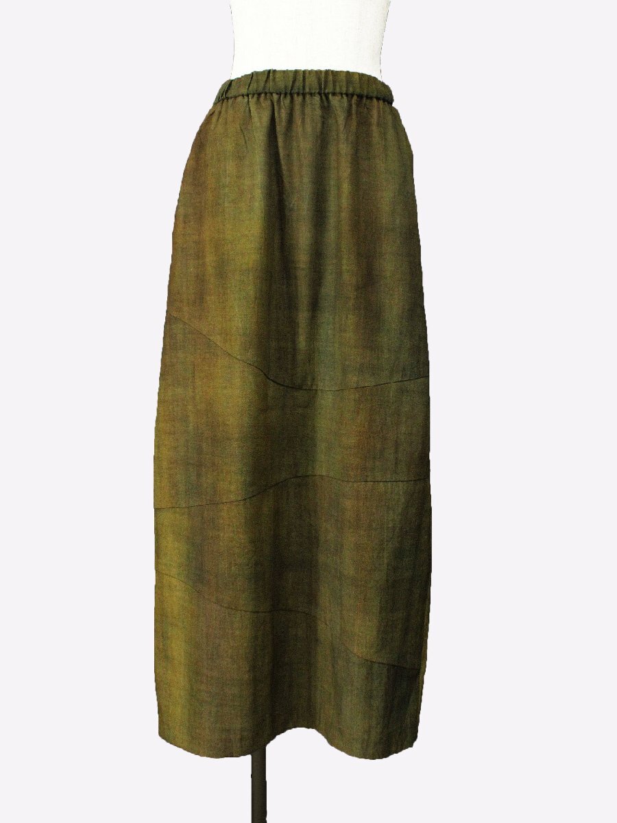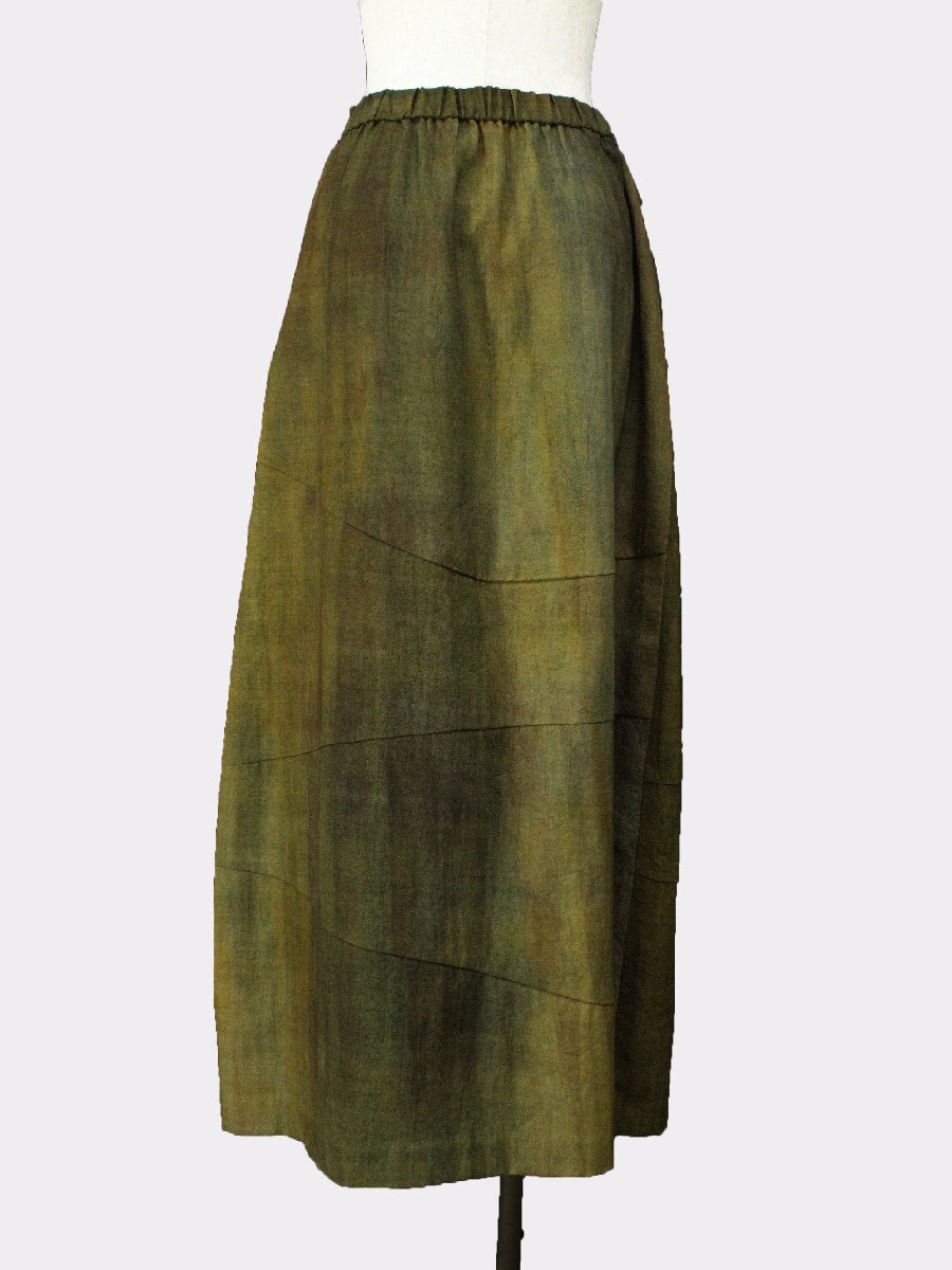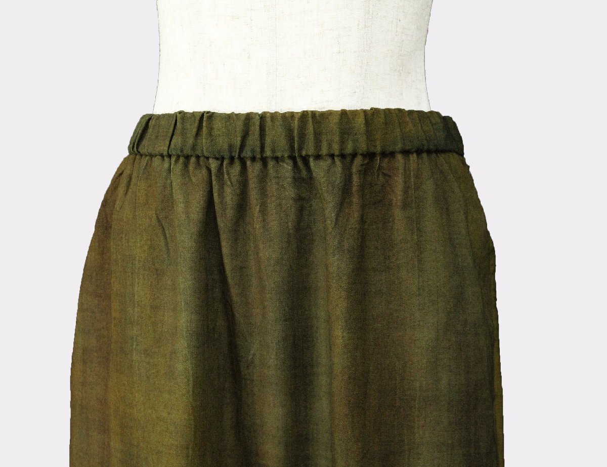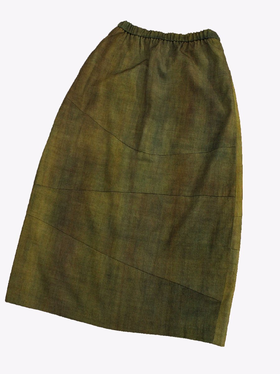 美品 慈雨/センソユニコ ウール100%ウエストゴムロング丈スカート 緑黄40 rl848