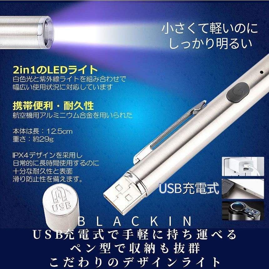 | 送料無料!!! 送料及び下記のご案内をご確認の上、ご入札お願い致します。 離島地域を除く九州、四国、本州まで送料無料。 ※北海道は+1000円、離島地域及び沖縄県は+3000円にて承ります。(発送前に加算) ※画像内にカラー及びサイズ等の選択が可能と記載がある場合がございますが、 お届けする物はタイトルまたは商品説明文に記載の物です。 ★※注文後のカラー変更や異なるカラー・サイズ指定等は一切承っておりません。 ※★※仕様(ロゴデザイン/ロゴ有無等も含む)は予告なく変更する場合があります。 ※多少の汚れや小傷がある場合がございますがご了承ください。 梱包は簡易包装ですので、箱の角落ち等はご了承願います。 【商品説明】 \ ペン型ブラックライト / 軽量でペン型ですので様々なシーンにマッチする 便利な作業用UVライトです。 USB充電式で挿すだけ簡単充電♪ IPX4デザインを采用し日常的に長時間使用するのに 十分な耐久性と表面滑り防止性を備えます。 ペットの尿発見や 紙幣、偽造品の識別時に、 宝石類の亀裂を検査 服や化粧品に蛍光物質等使い方様々♪ ============== 【商品仕様】 素材:アルミニウム合金 全長:12.5cm 重量:約29g 本体カラー:シルバー ※日本語説明書は付属しておりません ※輸入品ですので多少の臭いやスレ傷、汚れはご了承ください ※サイズは実寸ですが若干前後する場合がございます ============== ※詳細は画像にてご確認ください ![]() ![]() ![]() ![]() ![]() ![]() |