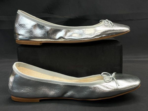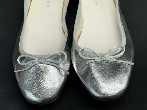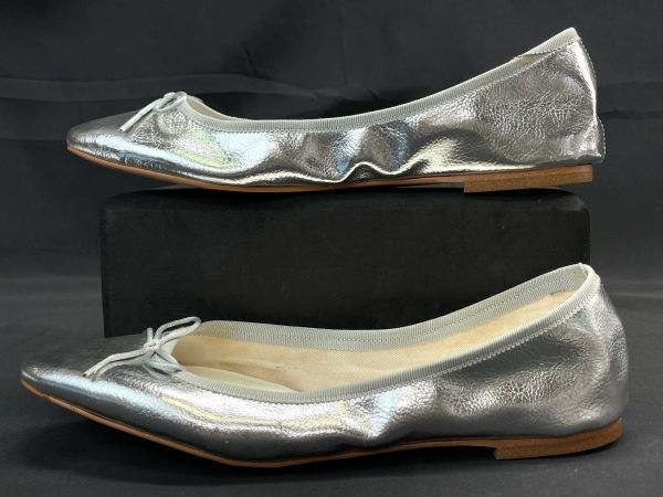 【R131】バレエシューズ ADAM ET ROPE' アダム・エ・ロペ メタリック リボン シルバー 23.5cm レディース | ||
