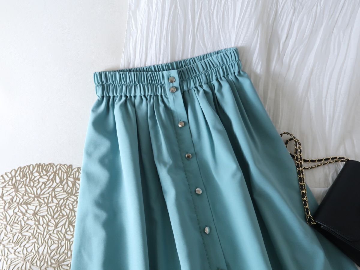 ボタンがポイントのミディ丈スカート。