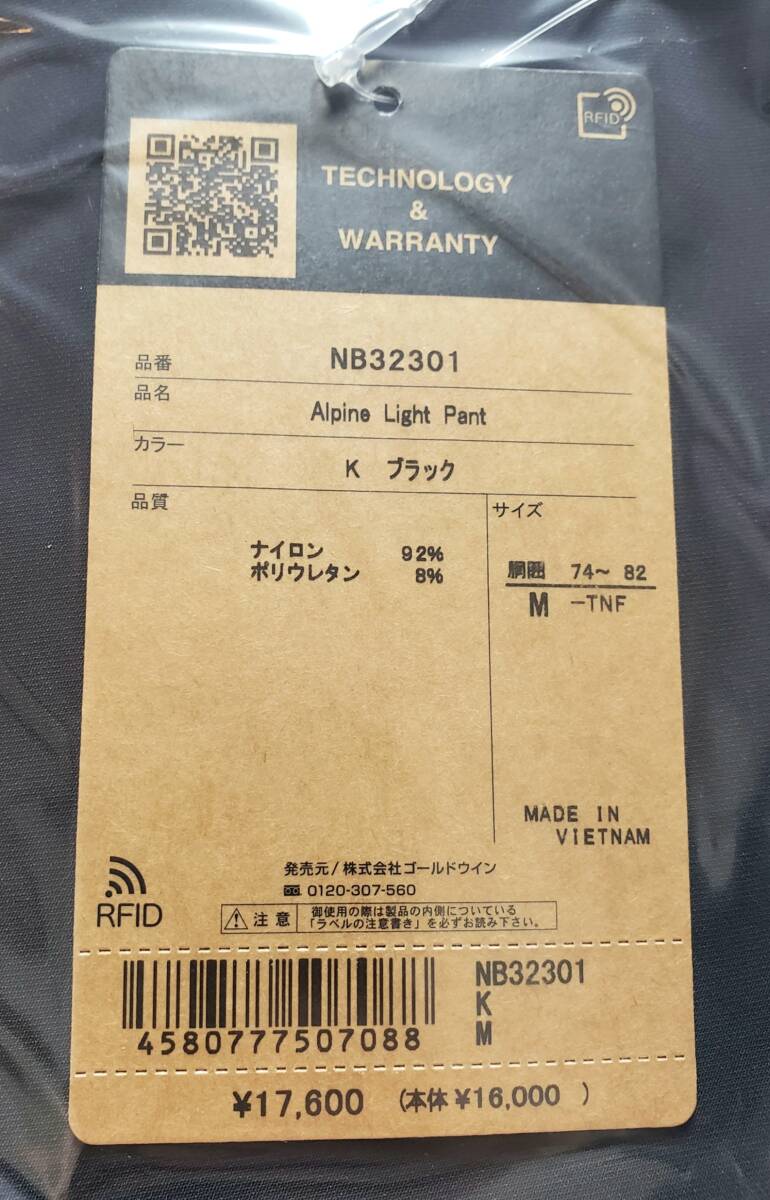 ◯最新作 THE NORTH FACE 新品タグ付き 美品 正規品 男性用 MEN ALPINE LIGHT PANT アルパイン ライト パンツ NB32301 Mサイズ カラーK ブラック ☆未使用 美品 新品タグ付き(発売日より保管されている美品になります。)