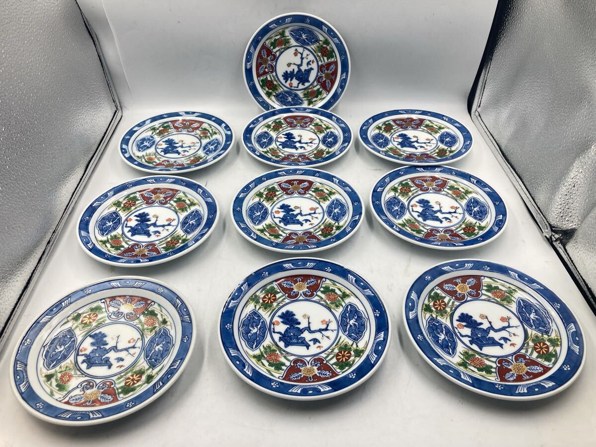 とても美品の古染付の染錦の金塗りの丸皿です。
